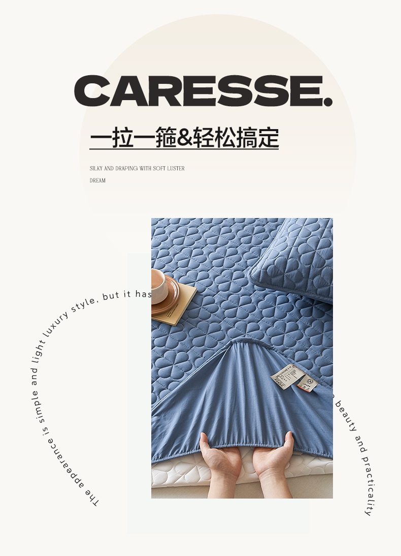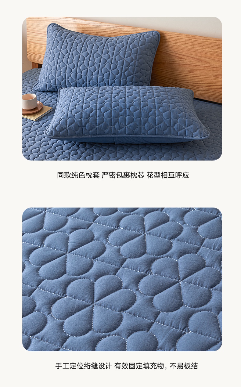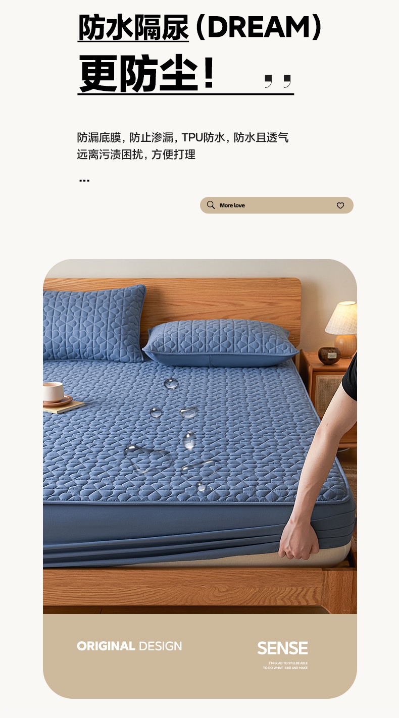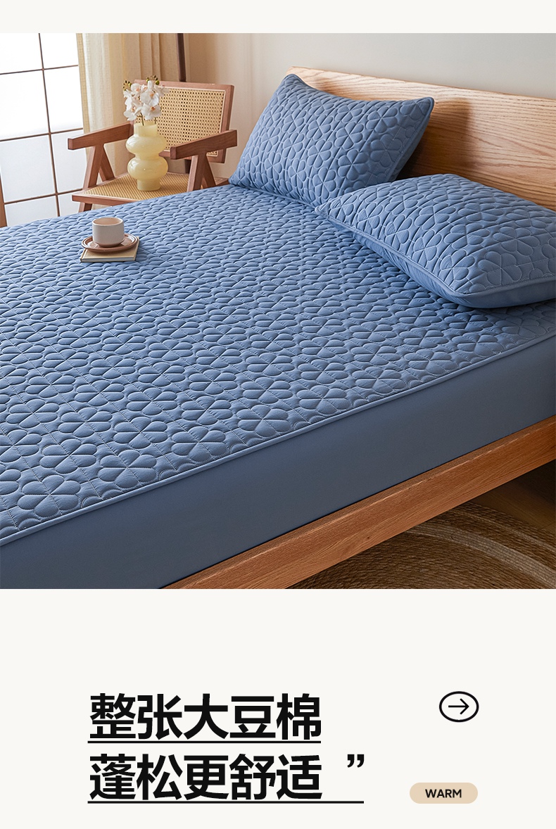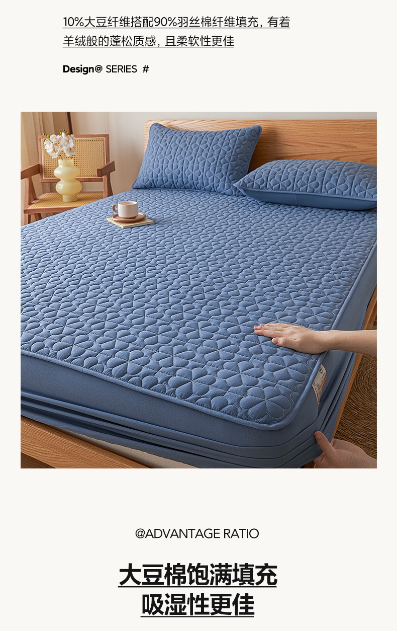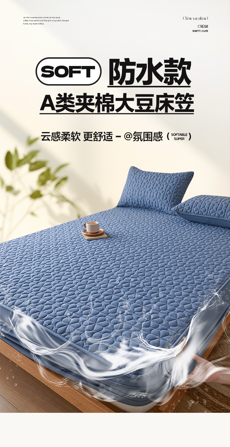 芬晴家纺 2025新款A类母婴级大豆防水夹棉床笠系列-约定-心动-繁花 繁花-雾蓝
