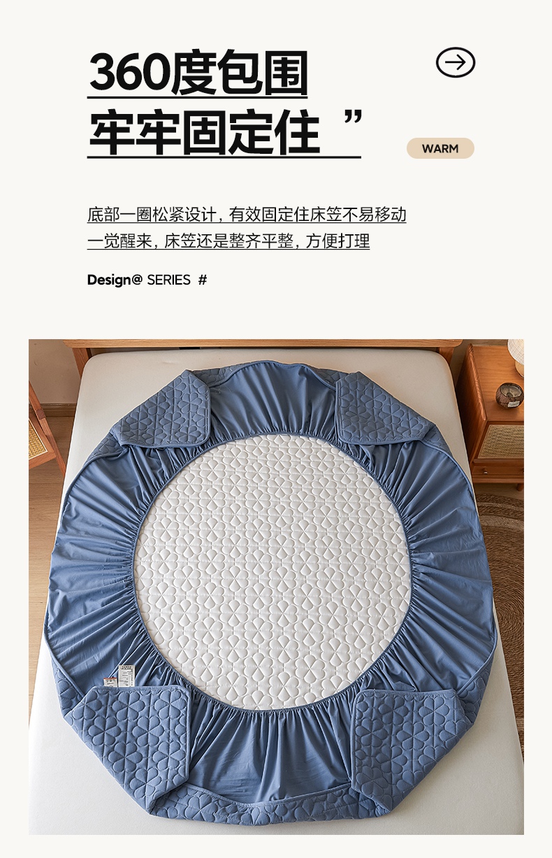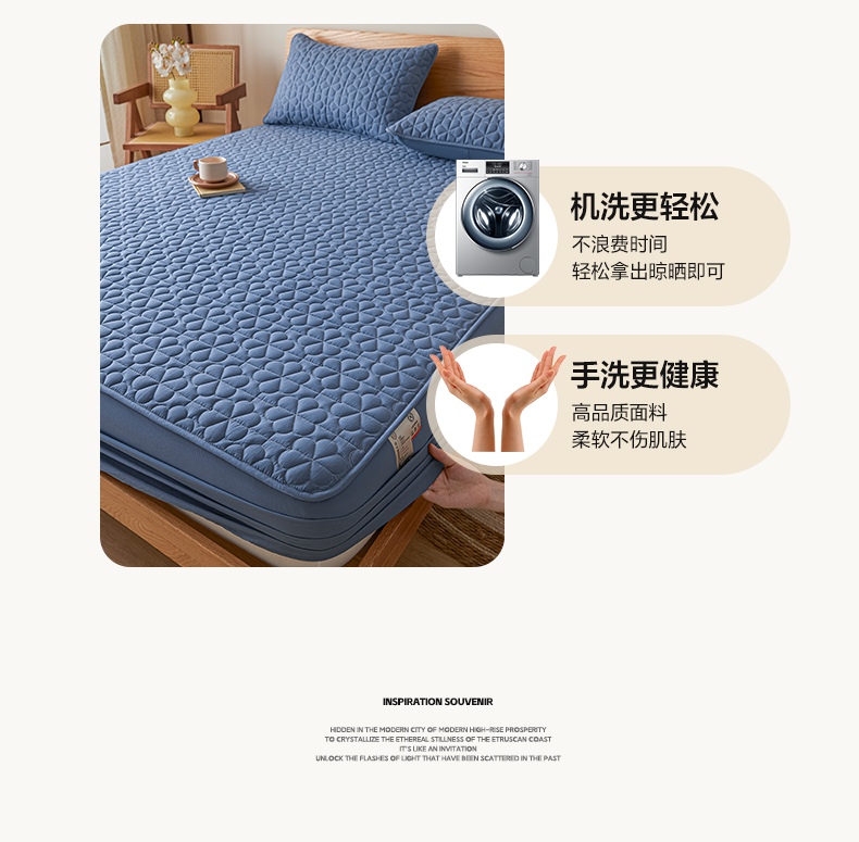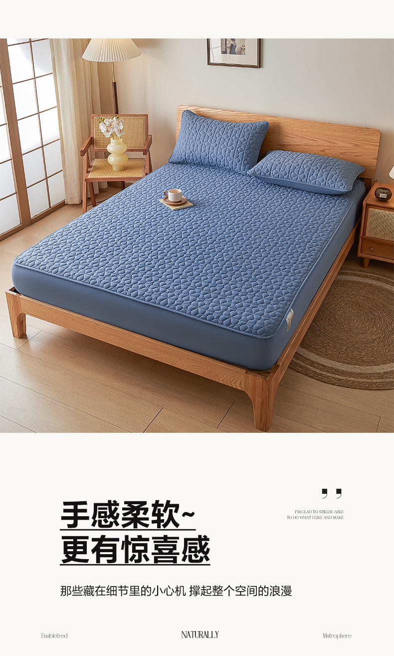 • 91家纺网 家纺一手货源 找家纺 芬晴家纺 2025新款A类母婴级大豆防水夹棉床笠系列-约定-心动-繁花 繁花-雾蓝