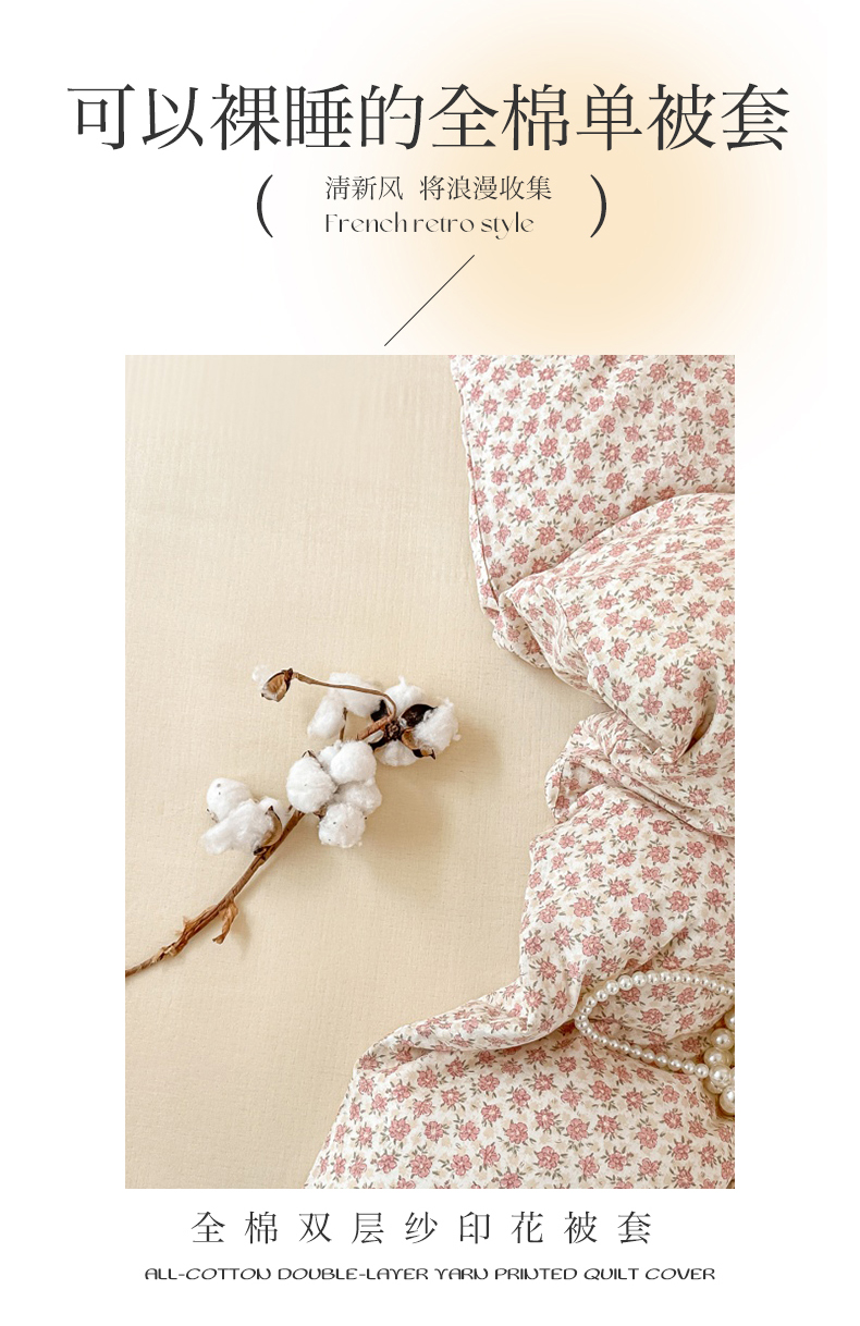 当前位置: 91家纺网 > 商品网购 > 床上用品 > 被套 > 芙绣家纺 2025新款A类全棉双层纱小清新印花单被套学生单被套单枕套 十里桃花