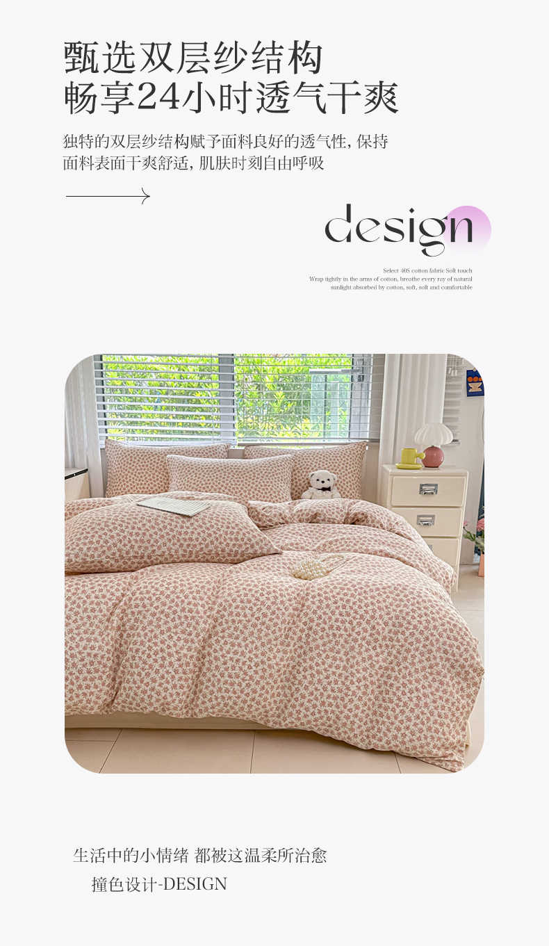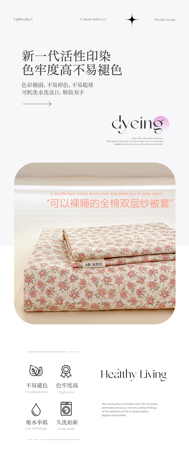 • 91家纺网 家纺一手货源 找家纺 芙绣家纺 2025新款A类全棉双层纱小清新印花单被套学生单被套单枕套 十里桃花