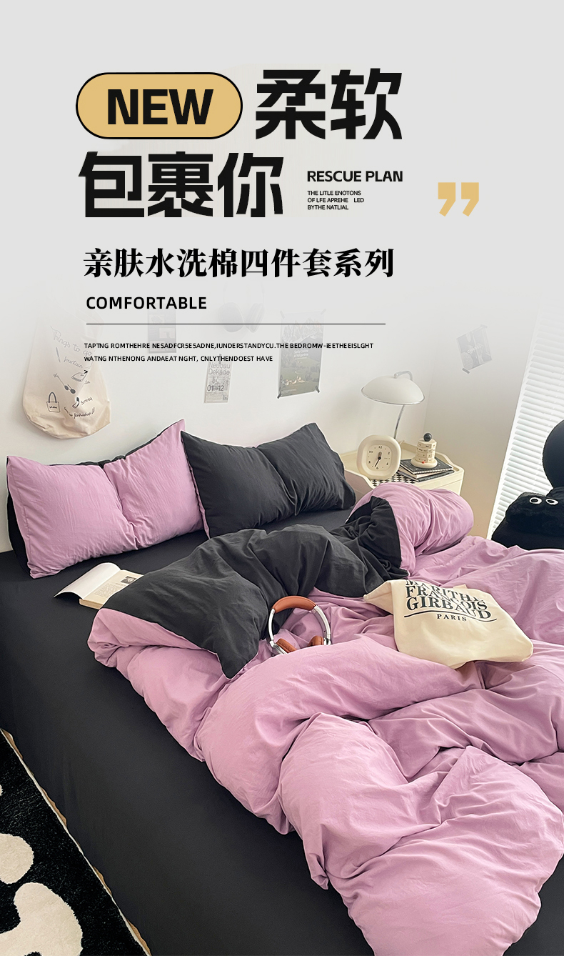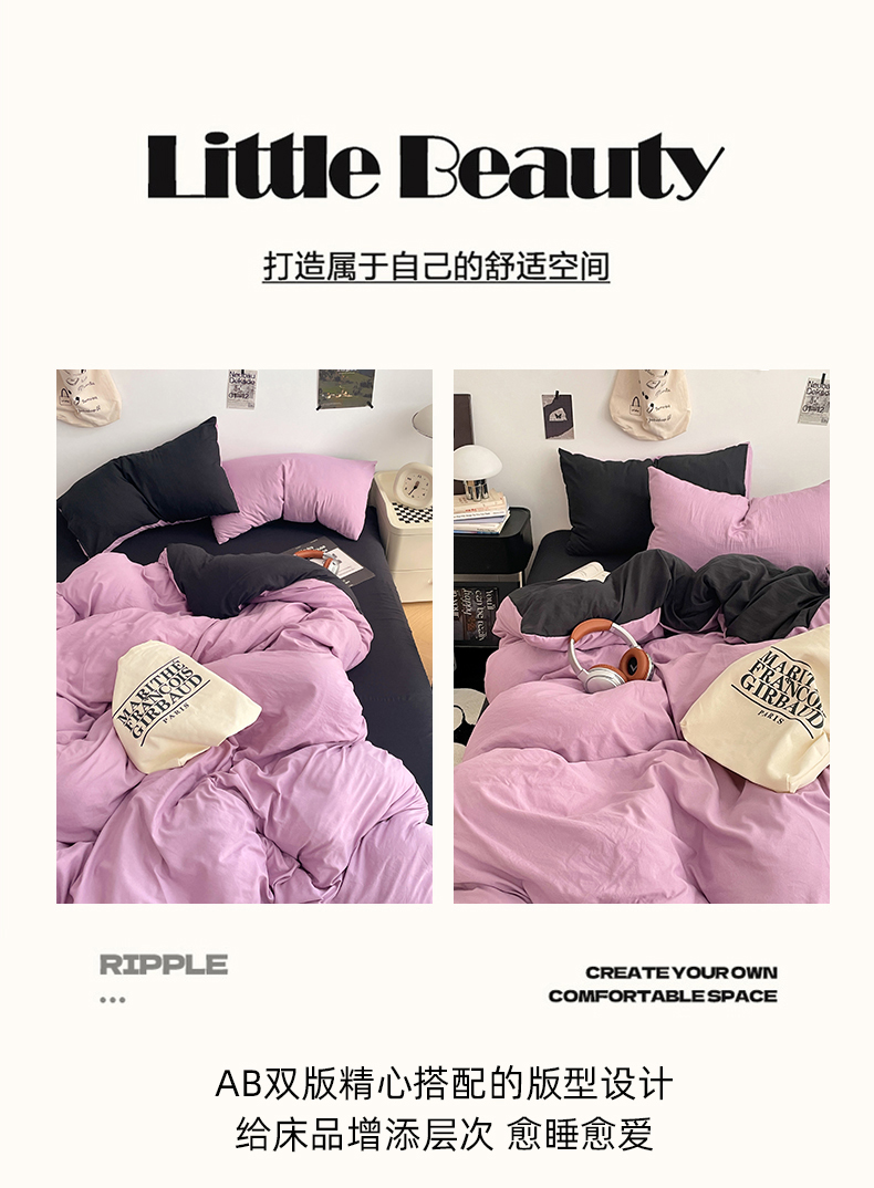 当前位置: 91家纺网 > 商品网购 > 床品套件 > 四件套 > 水洗棉四件套 > 优尚佳生活馆 2025新款INS风亲肤水洗棉四件套系列-纯色 紫色星空
