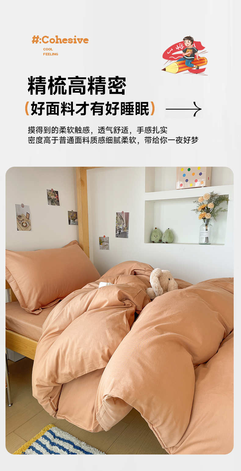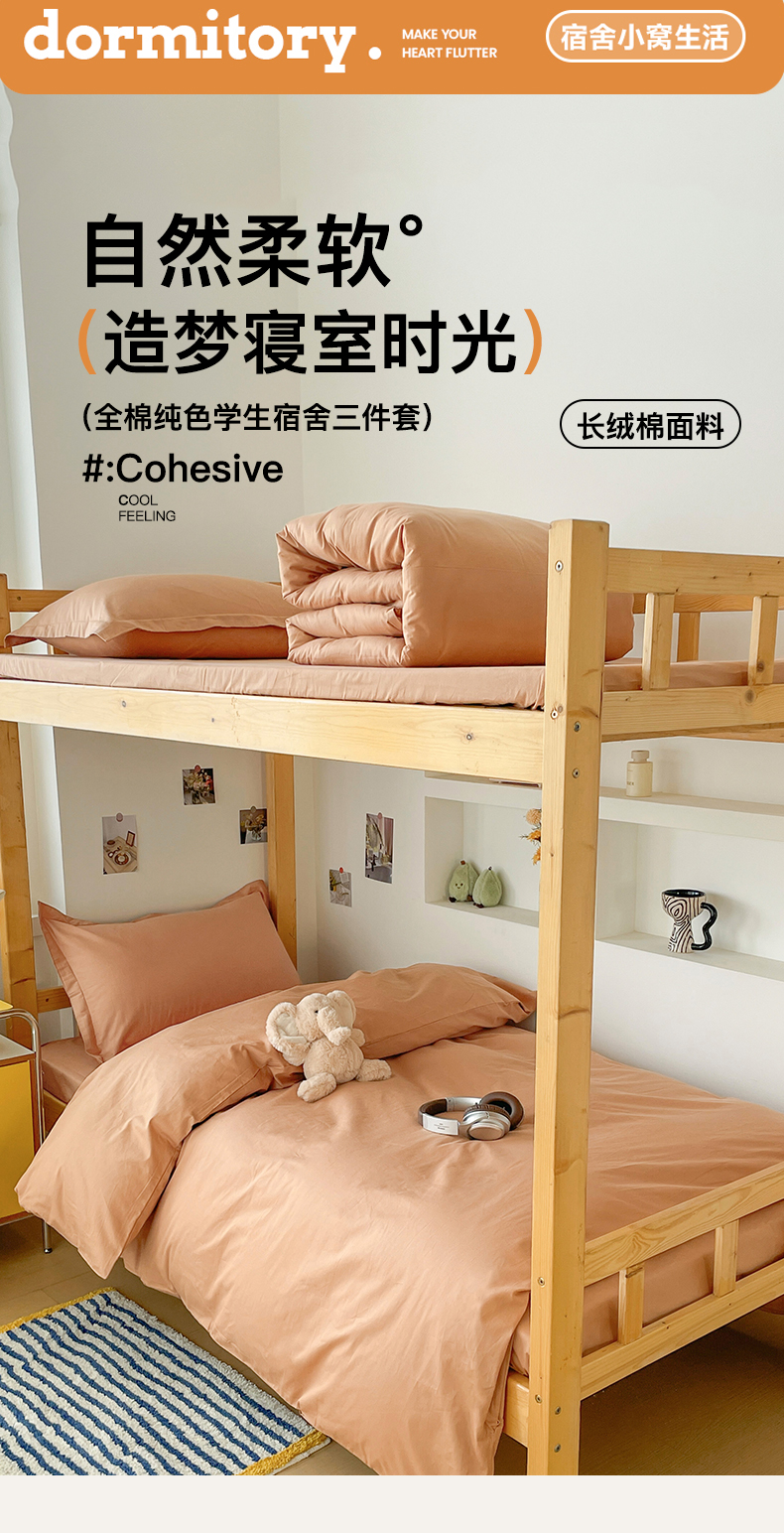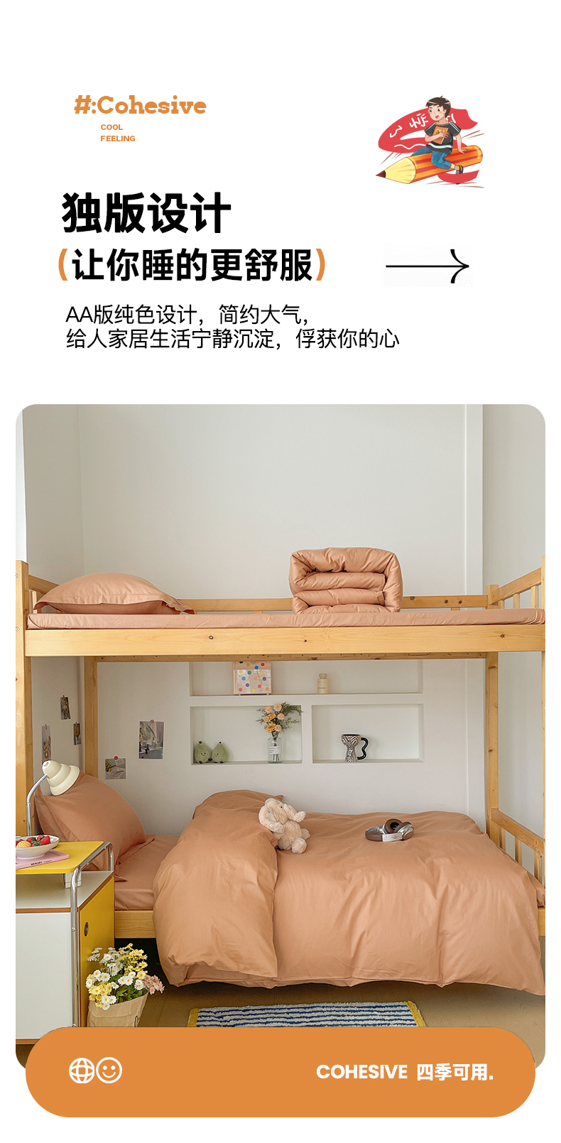 恩泽家纺 2025新款全棉双拼学生宿舍三件套 红驼色