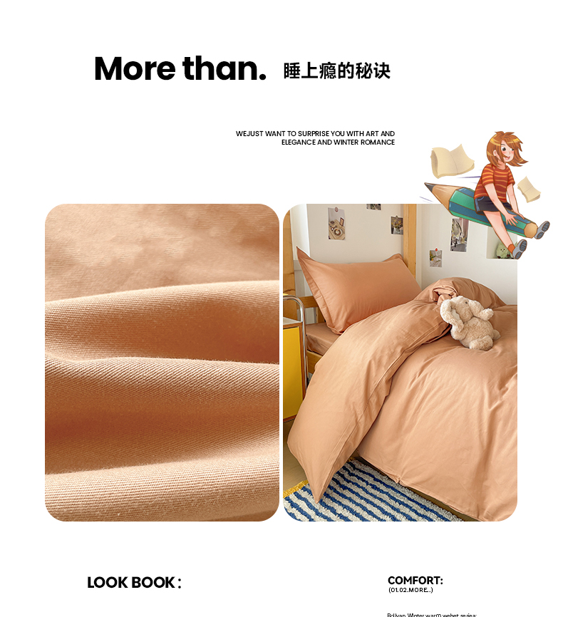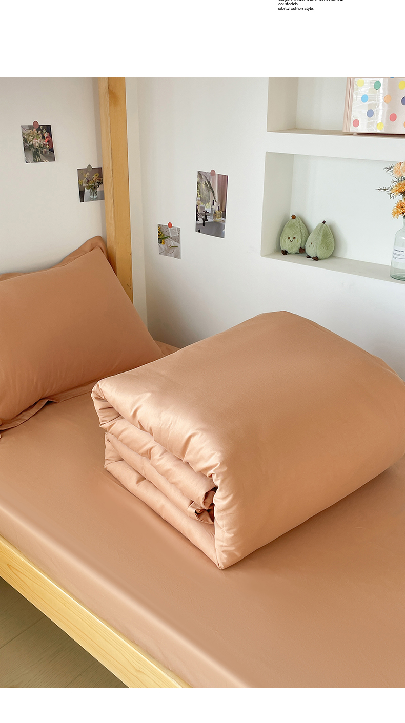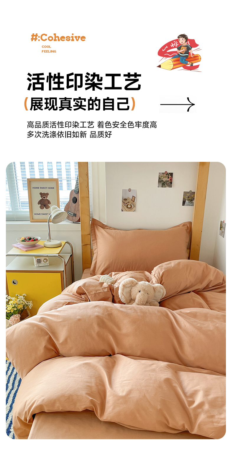 恩泽家纺 2025新款全棉双拼学生宿舍三件套 红驼色