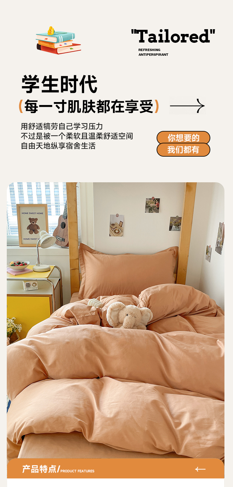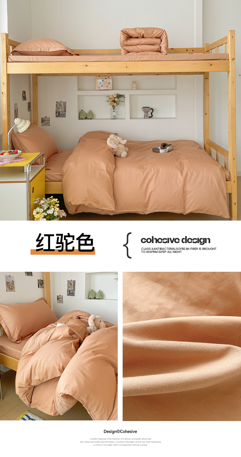 商品名称:恩泽家纺 2025新款全棉双拼学生宿舍三件套 红驼色