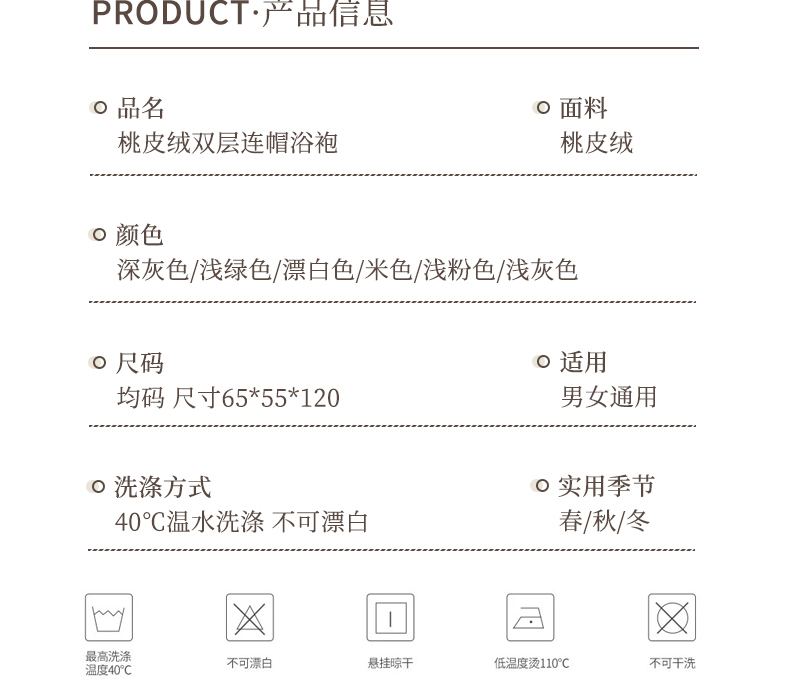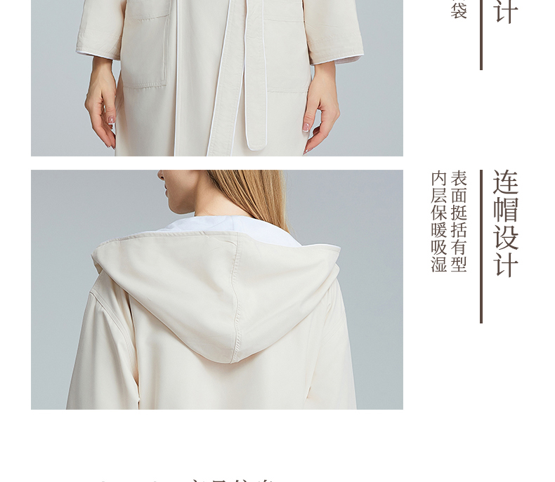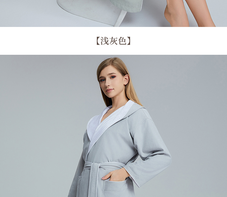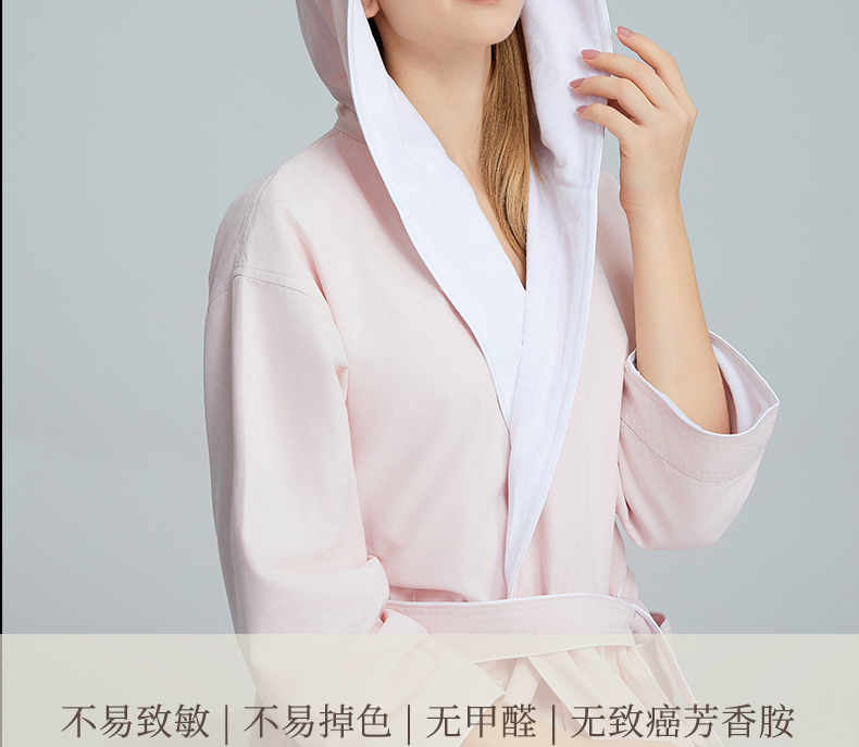 商品名称:澜昕 酒店桃皮绒双层连帽浴袍四季通用男女同款 可定制 浅绿色