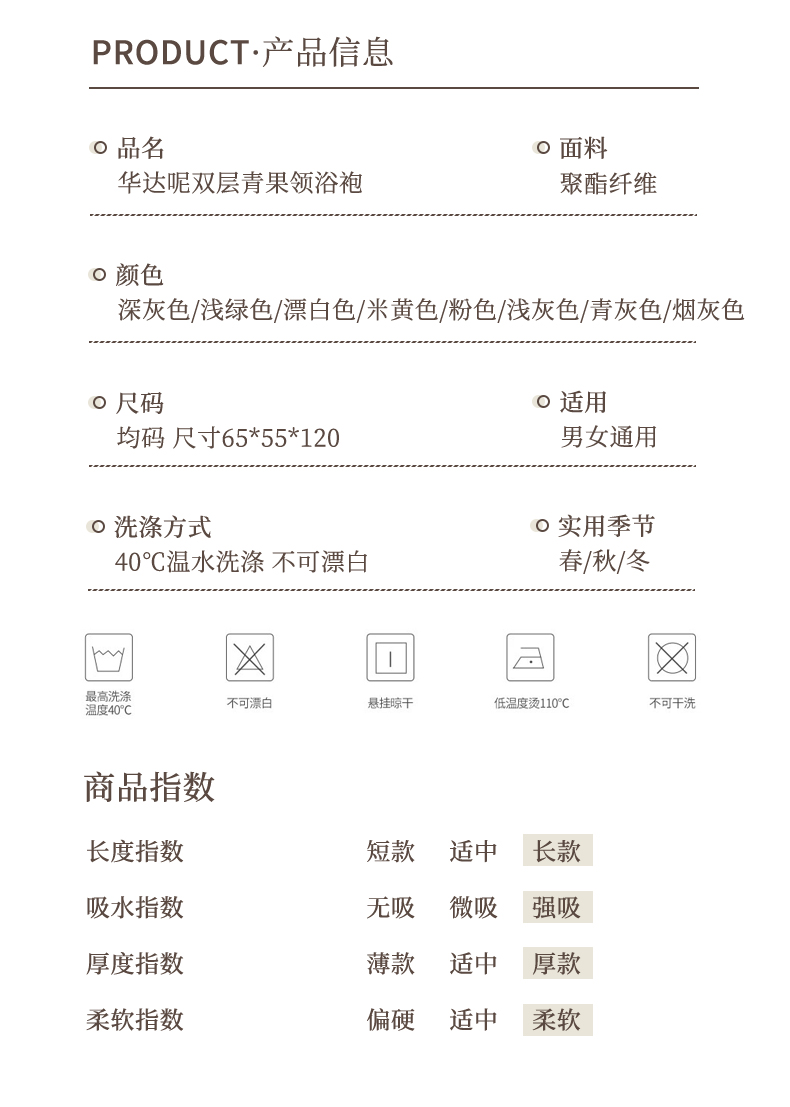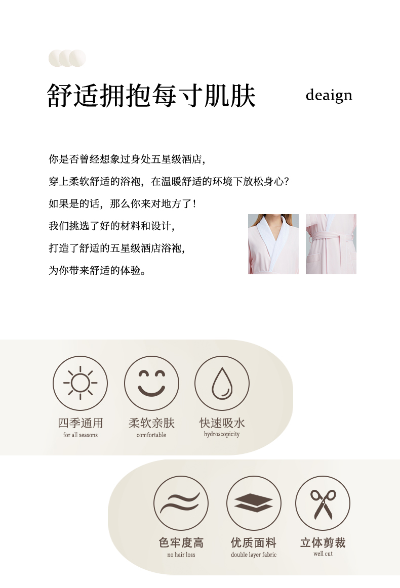商品名称:澜昕 酒店桃皮绒双层连帽浴袍四季通用男女同款 可定制 漂白色