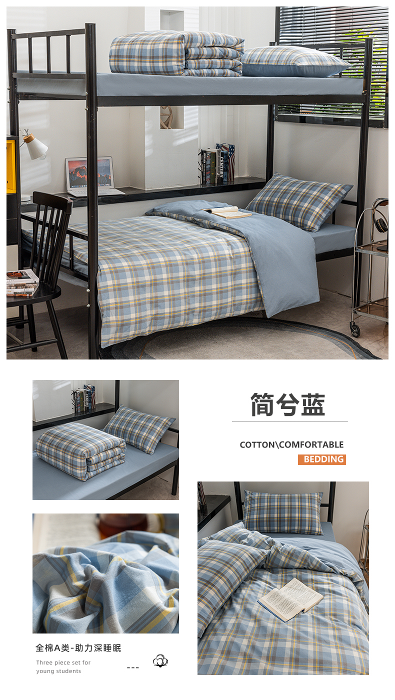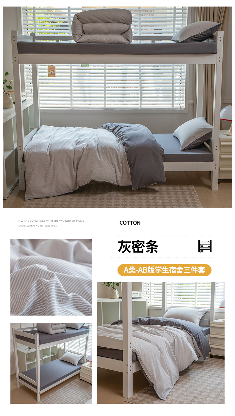 当前位置: 91家纺网 > 商品网购 > 床品套件 > 三件套 > 柠萌家居 2025新款无印良品风色织水洗棉A类学生宿舍三件套 灰密条