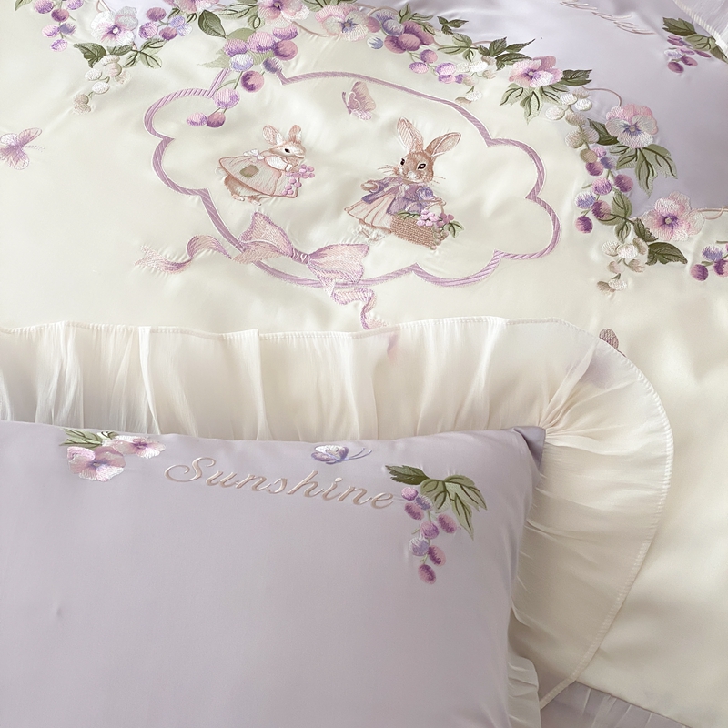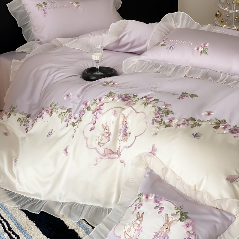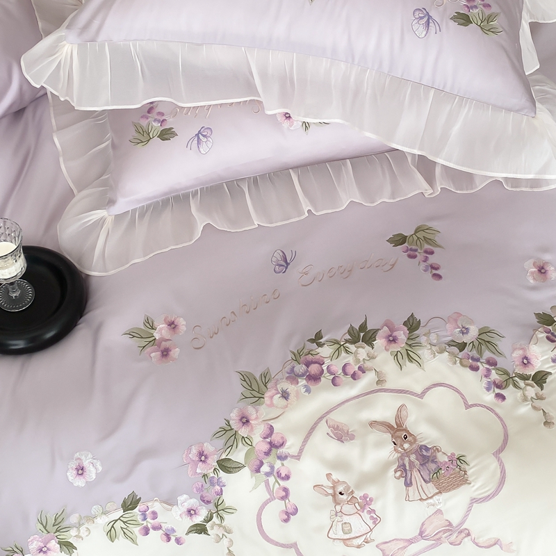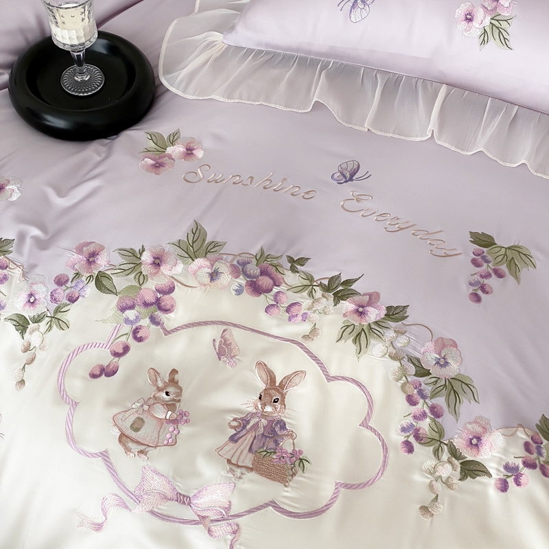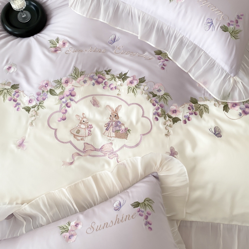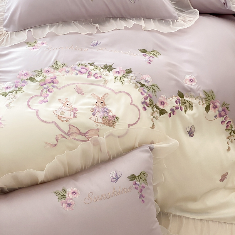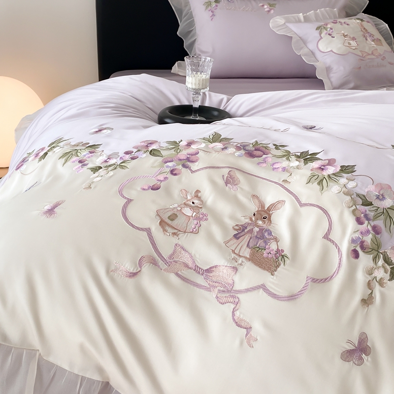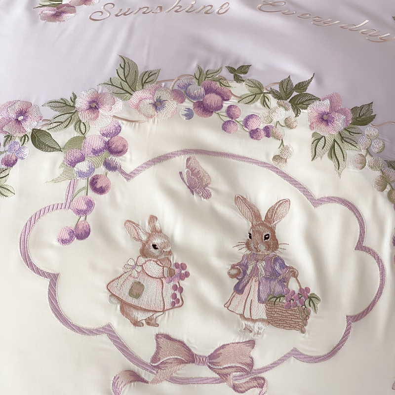 商品名称:(总)佳汐蓝家纺 2025春夏新品60s天丝刺绣四件套-兔子花园
