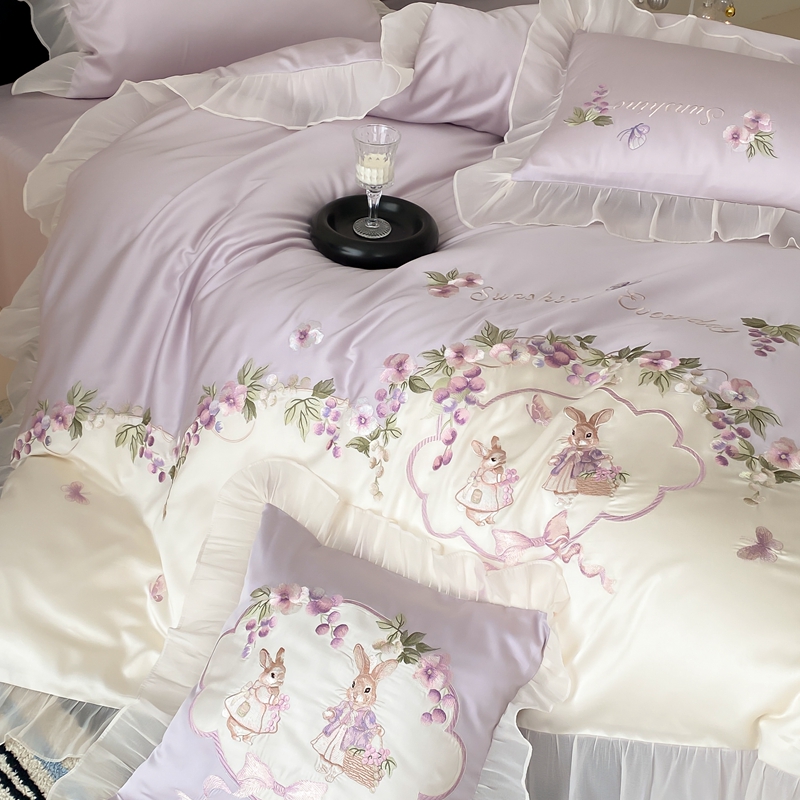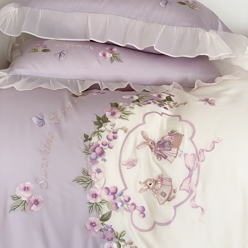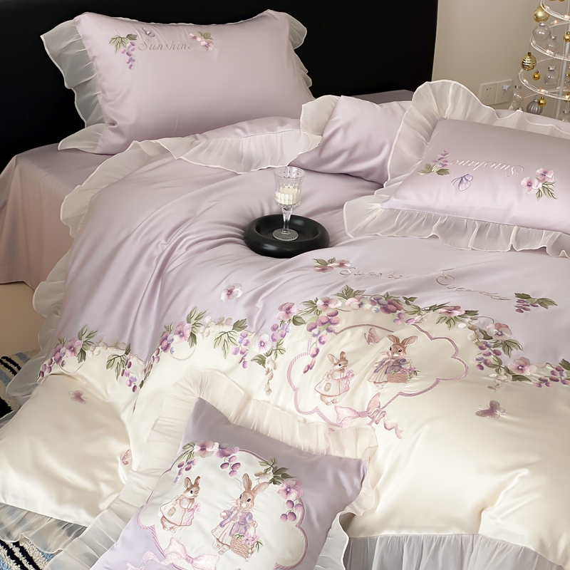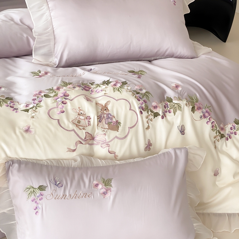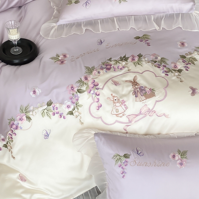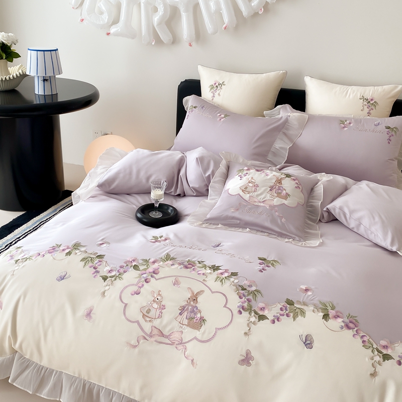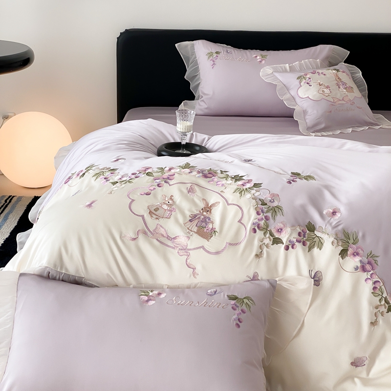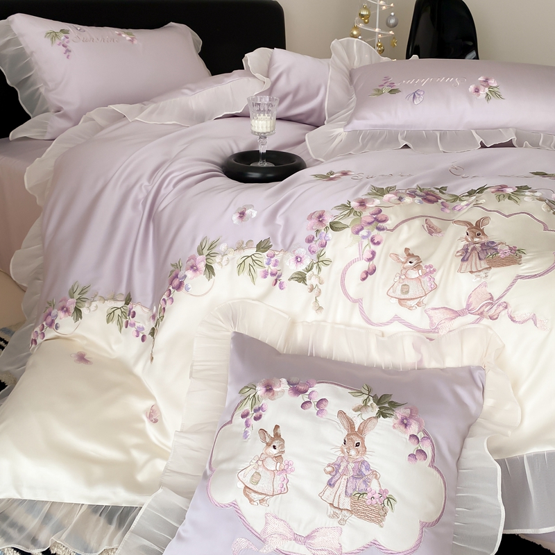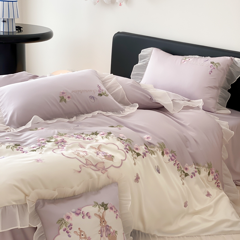 商品名称:(总)佳汐蓝家纺 2025春夏新品60s天丝刺绣四件套-兔子花园