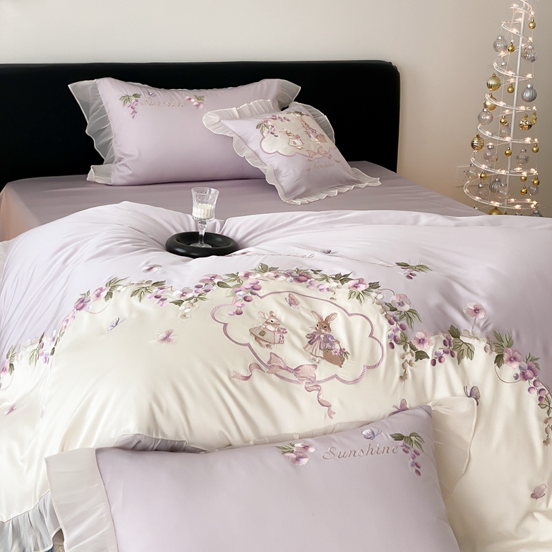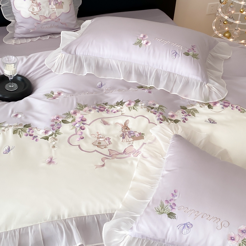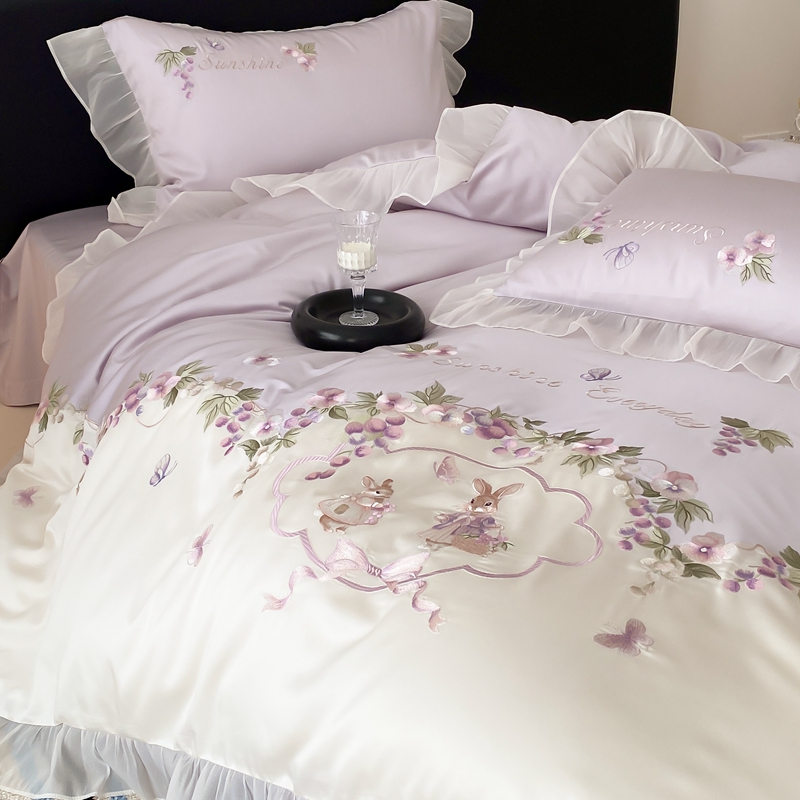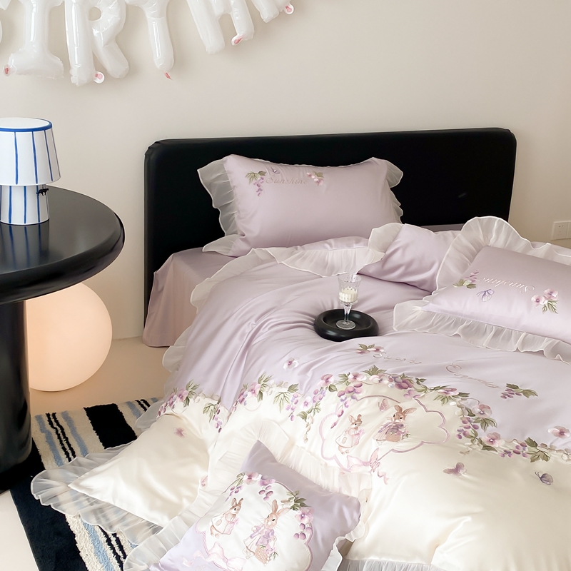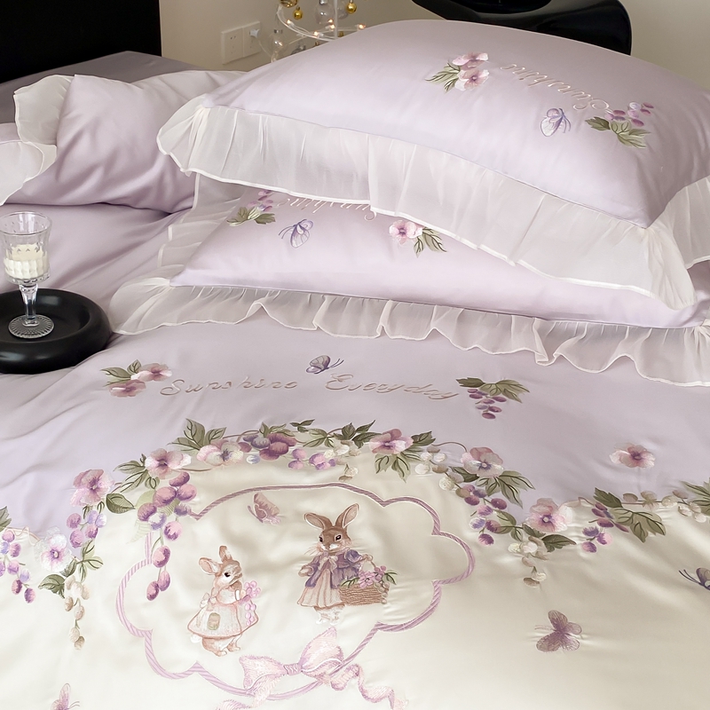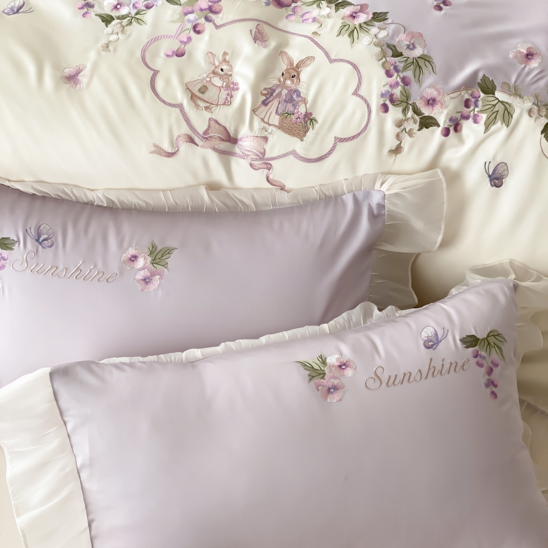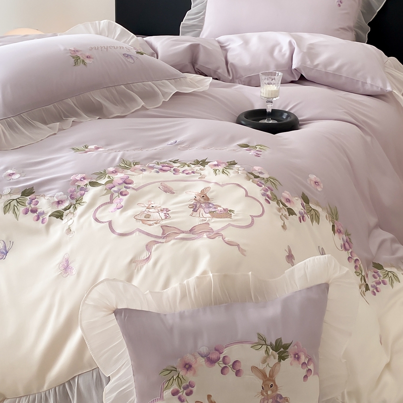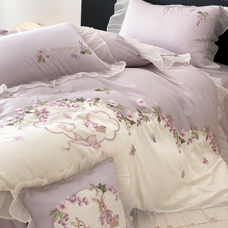 商品名称:(总)佳汐蓝家纺 2025春夏新品60s天丝刺绣四件套-兔子花园