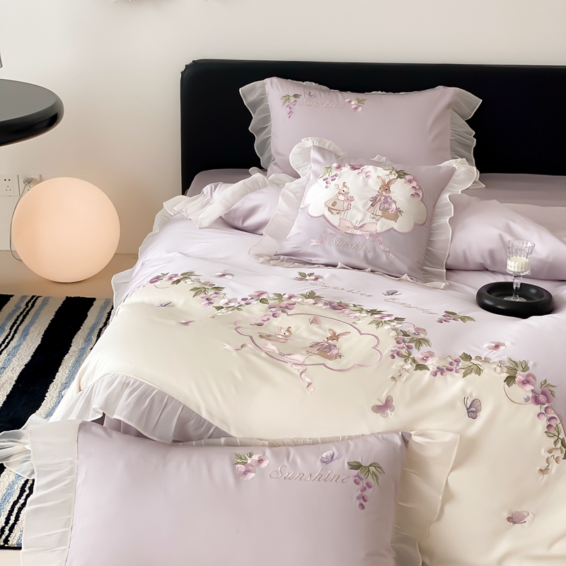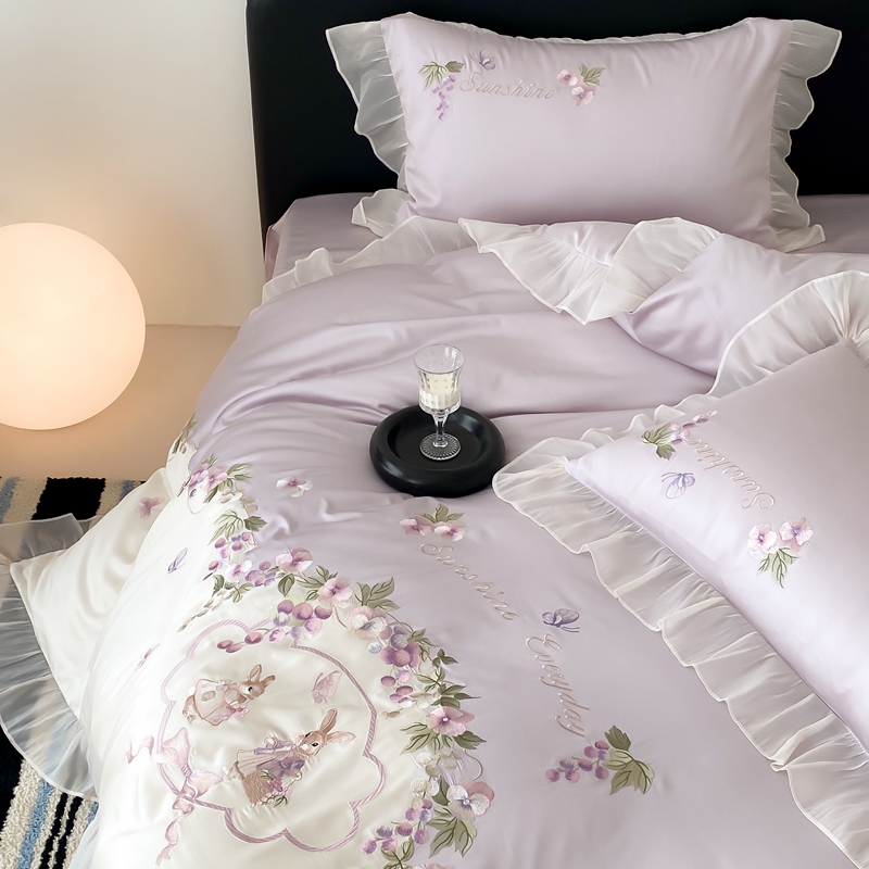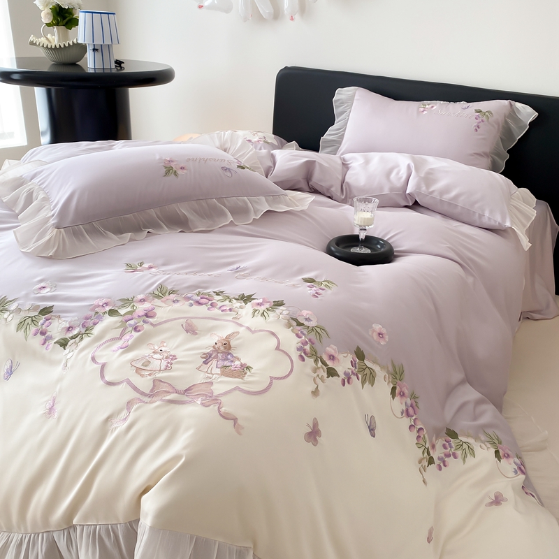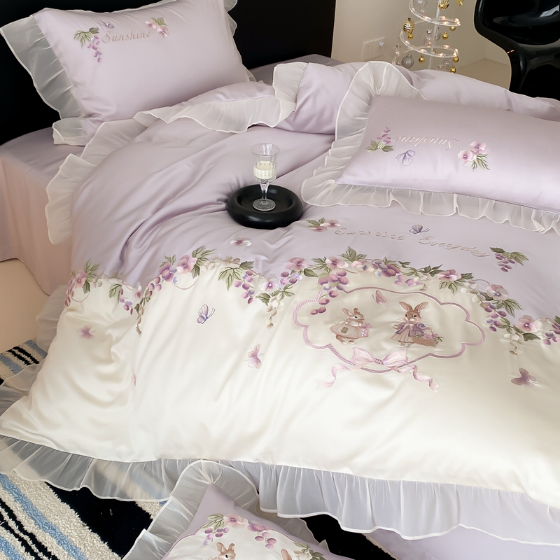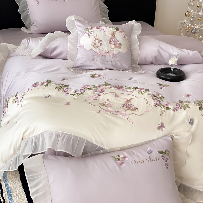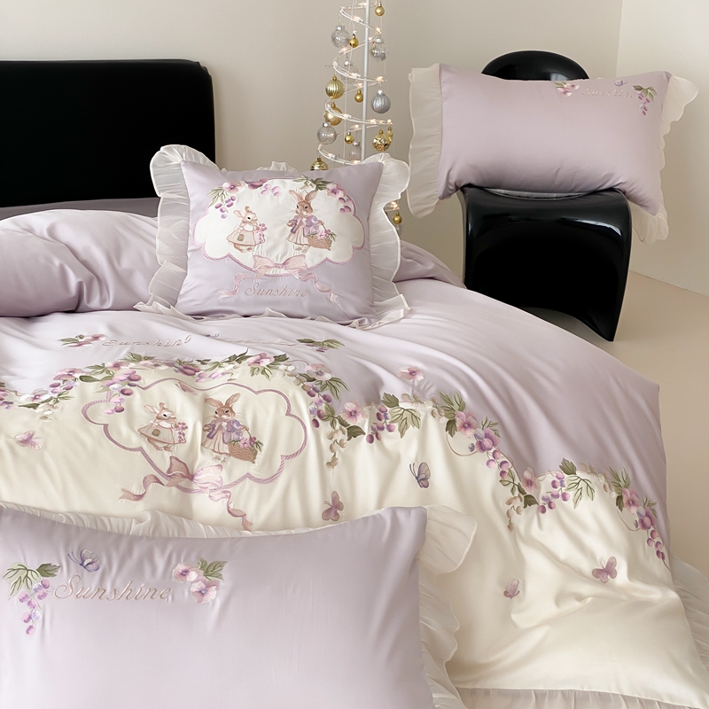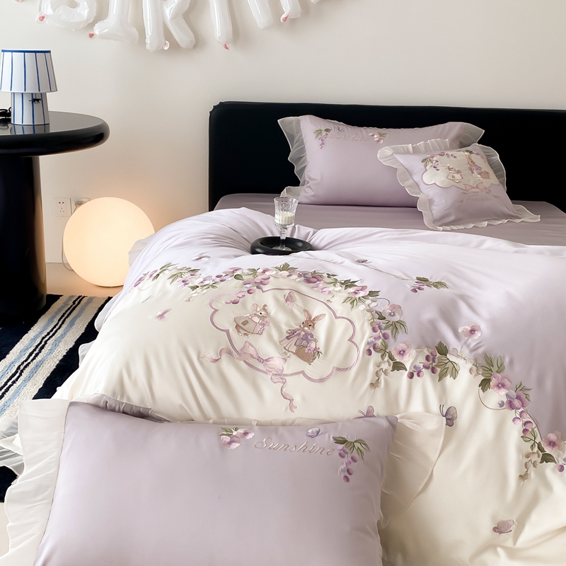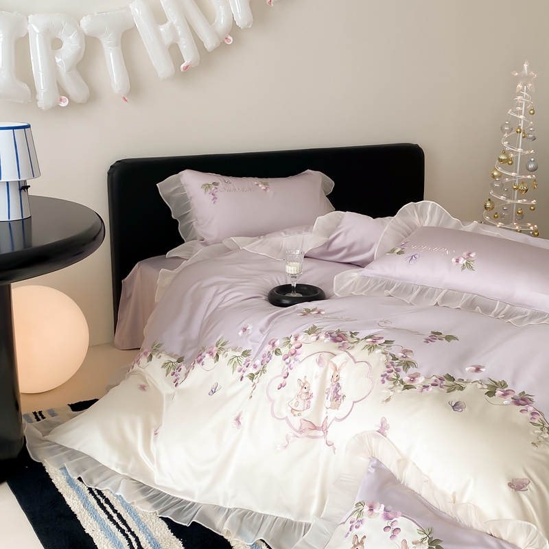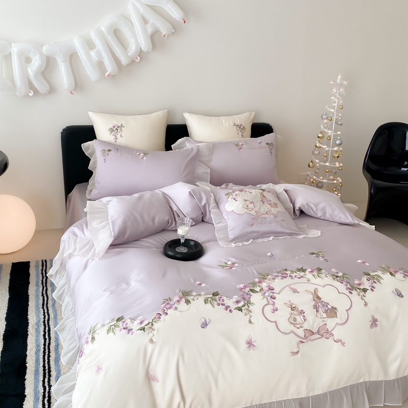 商品名称:(总)佳汐蓝家纺 2025春夏新品60s天丝刺绣四件套-兔子花园