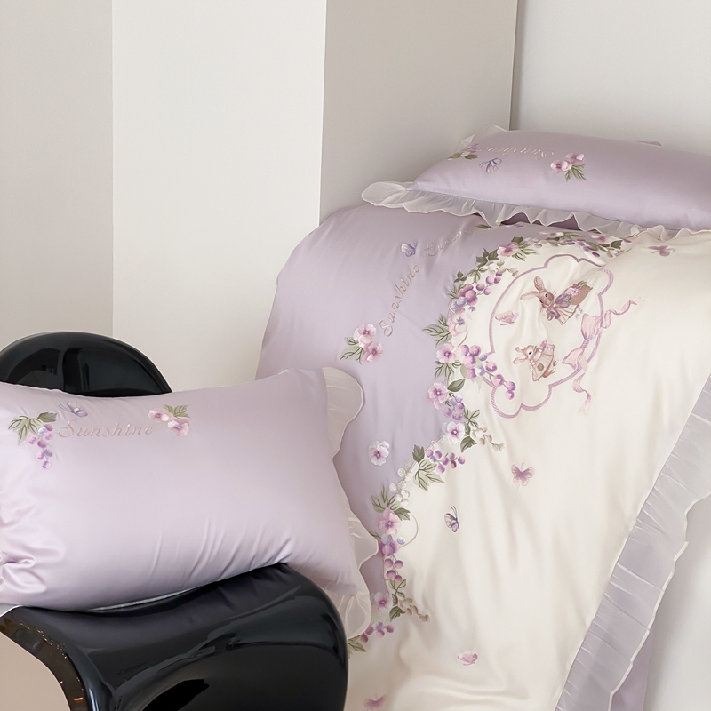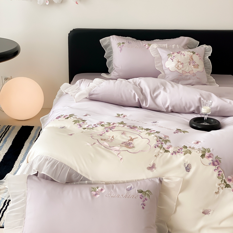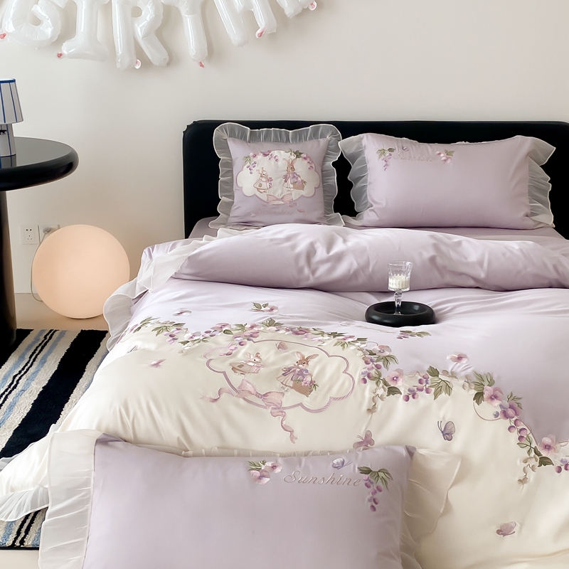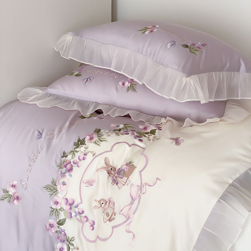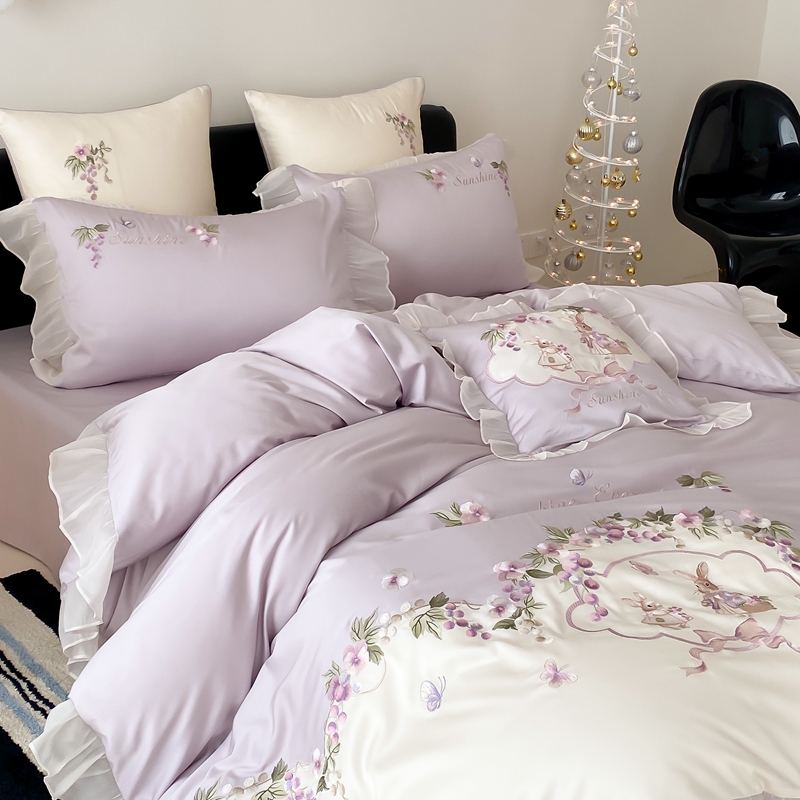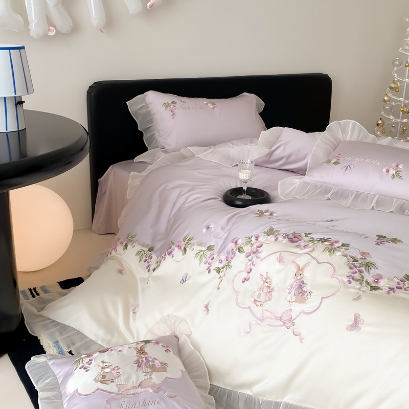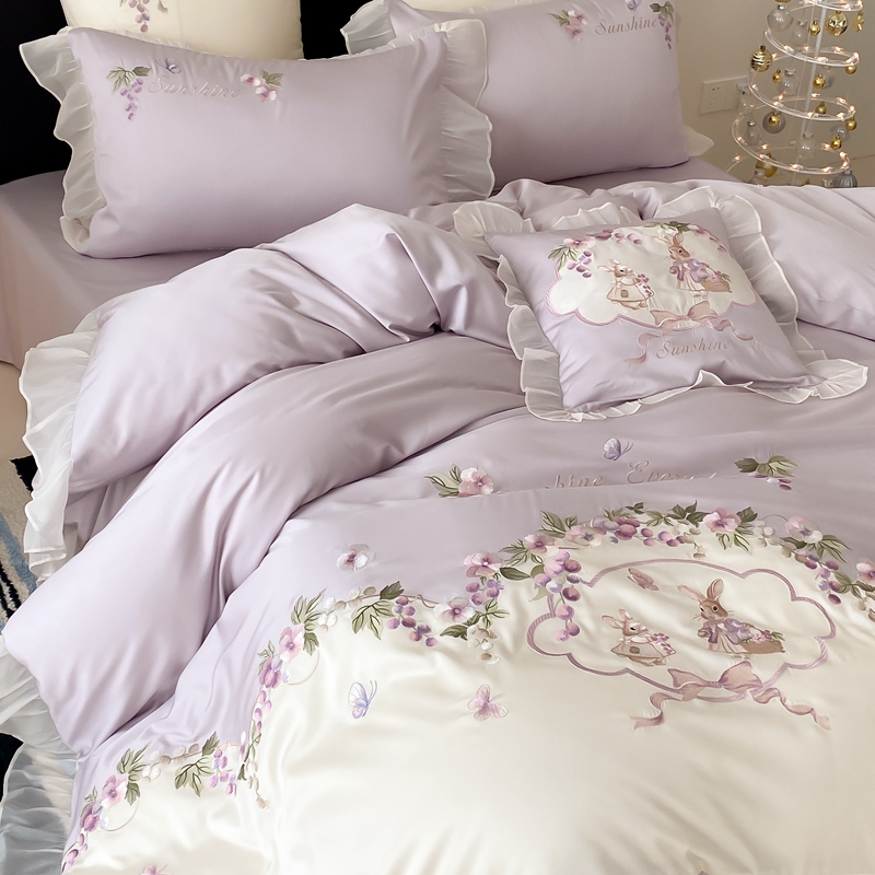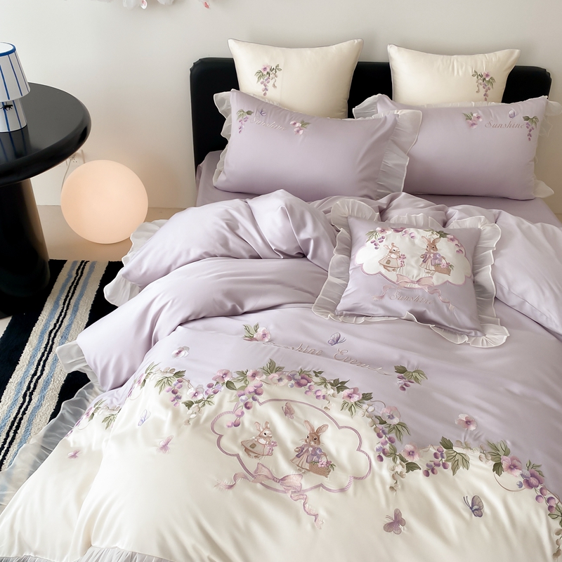 商品名称:(总)佳汐蓝家纺 2025春夏新品60s天丝刺绣四件套-兔子花园