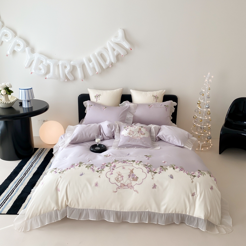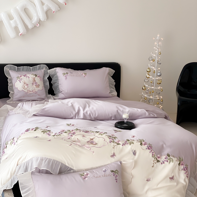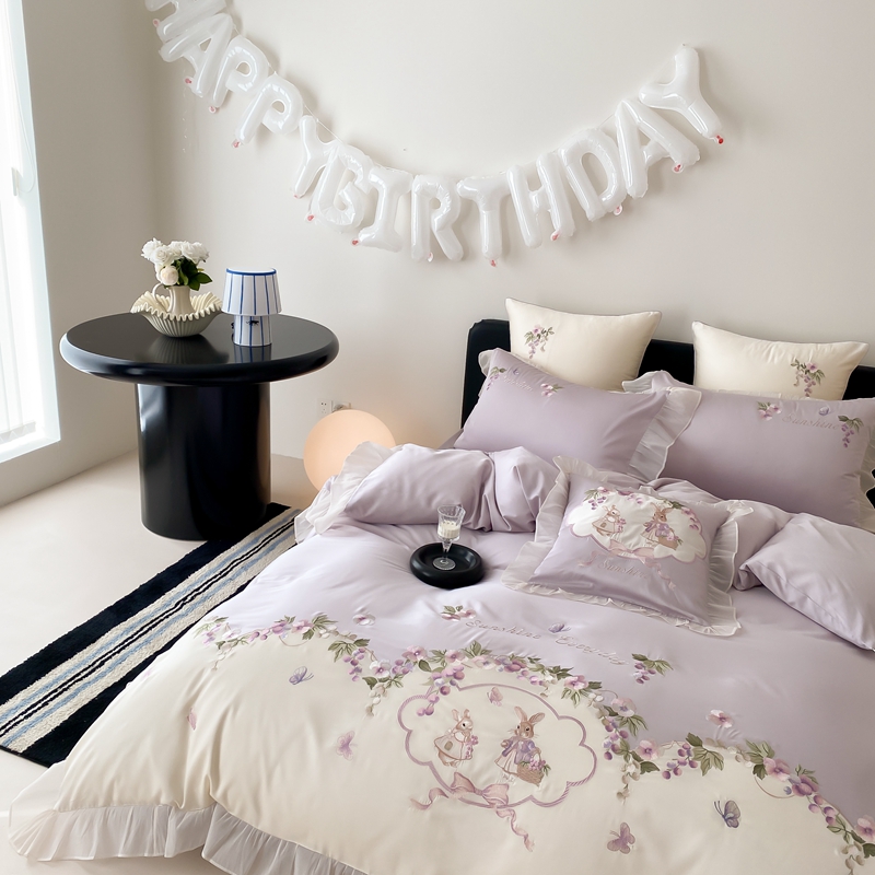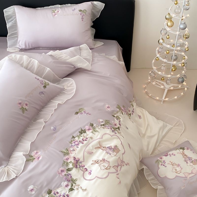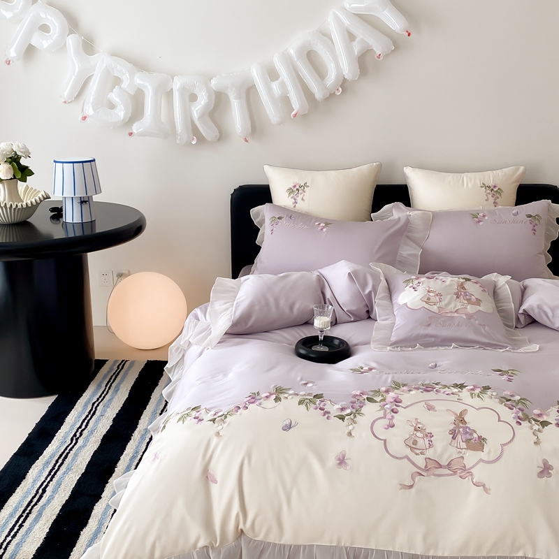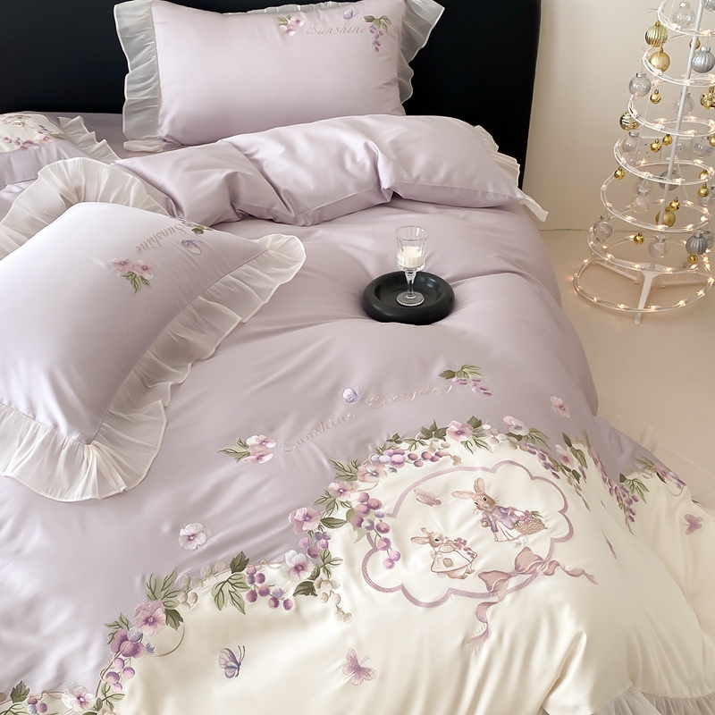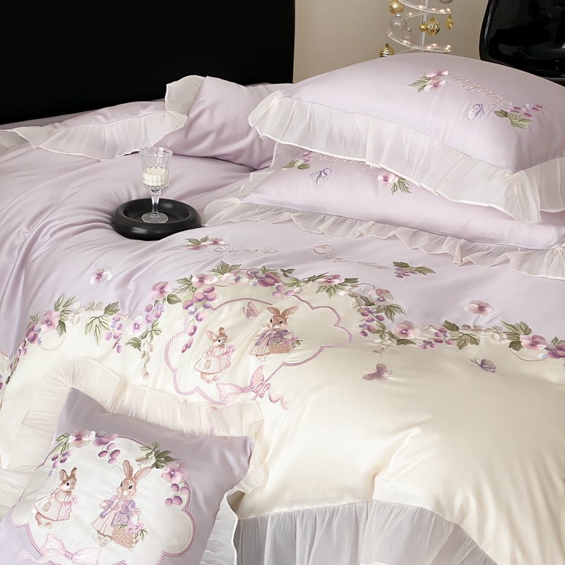 (总)佳汐蓝家纺 2025春夏新品60s天丝刺绣四件套-兔子花园
