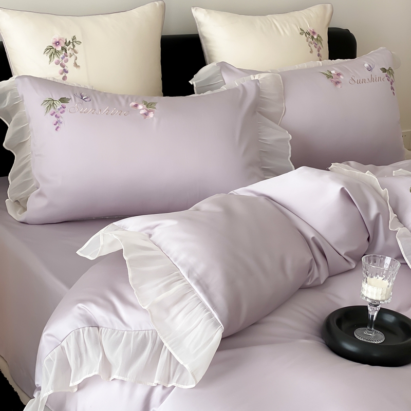 (总)佳汐蓝家纺 2025新款全棉刺绣花边四件套-妮娅,妮娅-粉色,妮娅-米白色,妮娅-香槟色,妮娅-紫色