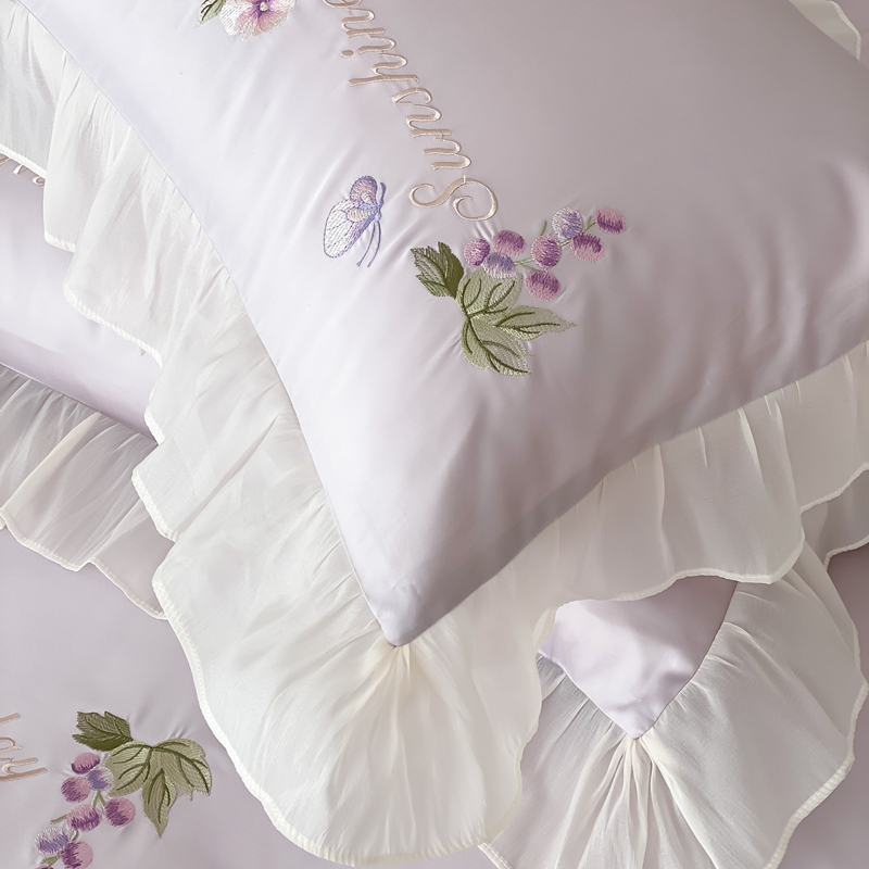 (总)佳汐蓝 2025春夏新品双层皱皱纱刺绣+荷叶边四件套--花与浔,奶白,天蓝