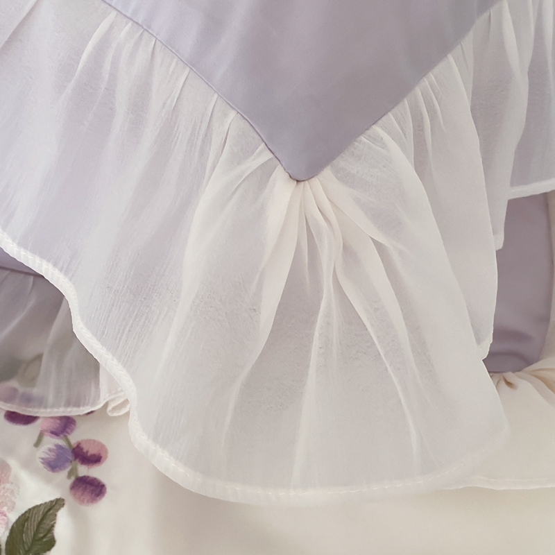 (总)佳汐蓝 2025春夏新品双层皱皱纱刺绣+织带+荷叶边四件套--白茶花,奶白,曲奇