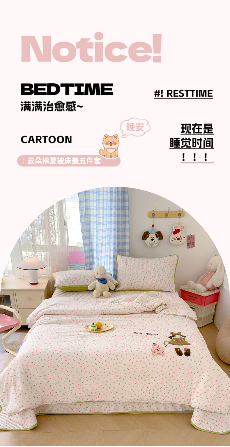 (总)赫梵茜 2025新款云朵棉毛巾绣床盖夏被被套四件套,小女孩,好朋友,恐龙,熊猫,月亮兔子,组合图仅做展示