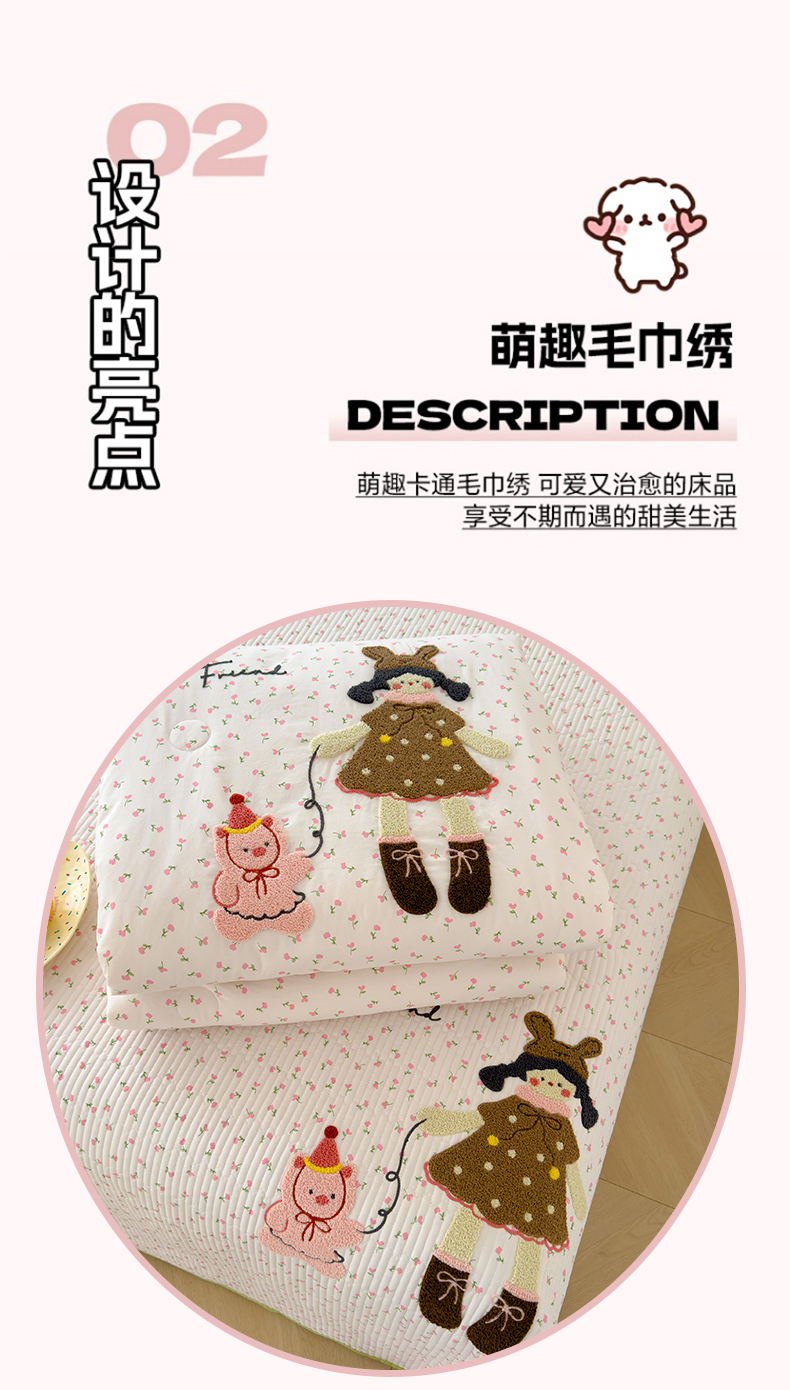 当前位置: 91家纺网 > 商品网购 > 床品套件 > 四件套 > 夏被四件套 > 赫梵茜 2025新款云朵棉毛巾绣床盖夏被被套四件套 组合图仅做展示
