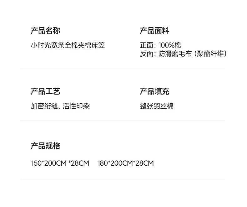 商品名称:三味舒屋 2025新款韩风小时光宽条全棉纯棉夹棉床笠系列单床笠床笠单件 组合图仅供参考