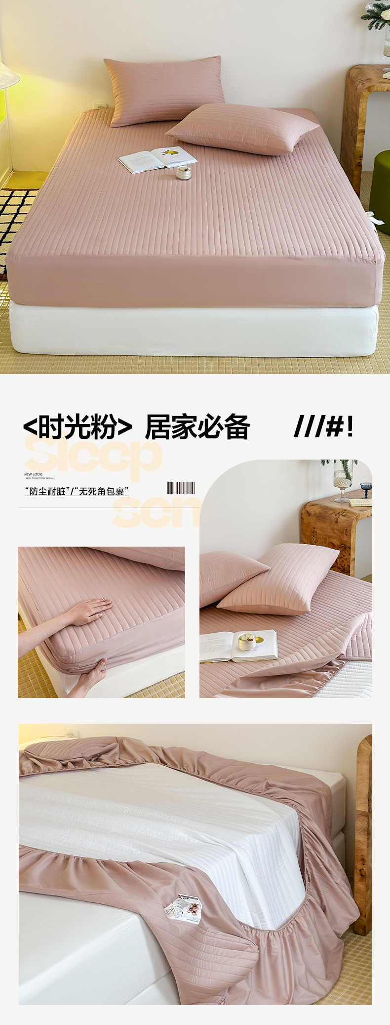 (总)三味舒屋 2026新款三防功能夹棉床笠床垫保护罩(严格控价:券后135/155/165),组合图仅供展示-不可下单,纯净白,净月白,净月灰,雅致灰