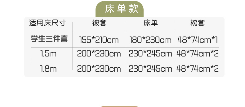 【床单款】0.9三件套-被套155x200 | ¥85.00 |