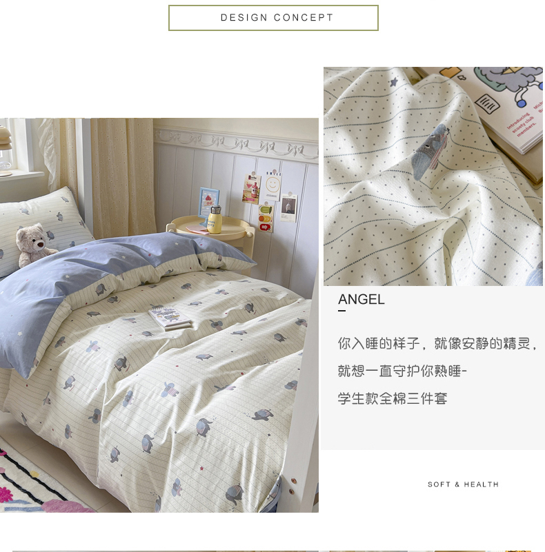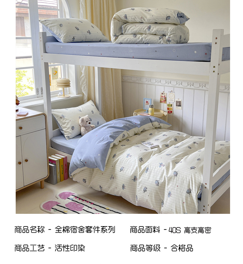 当前位置: 91家纺网 > 商品网购 > 床品套件 > 三件套 > 麦伦家居 2025新款40支13372全棉纯棉斜纹学生上下铺床品宿舍三件套上下铺四件套系列 跳跳象