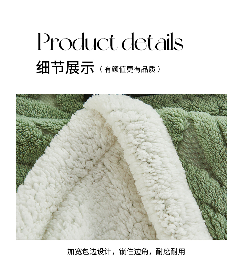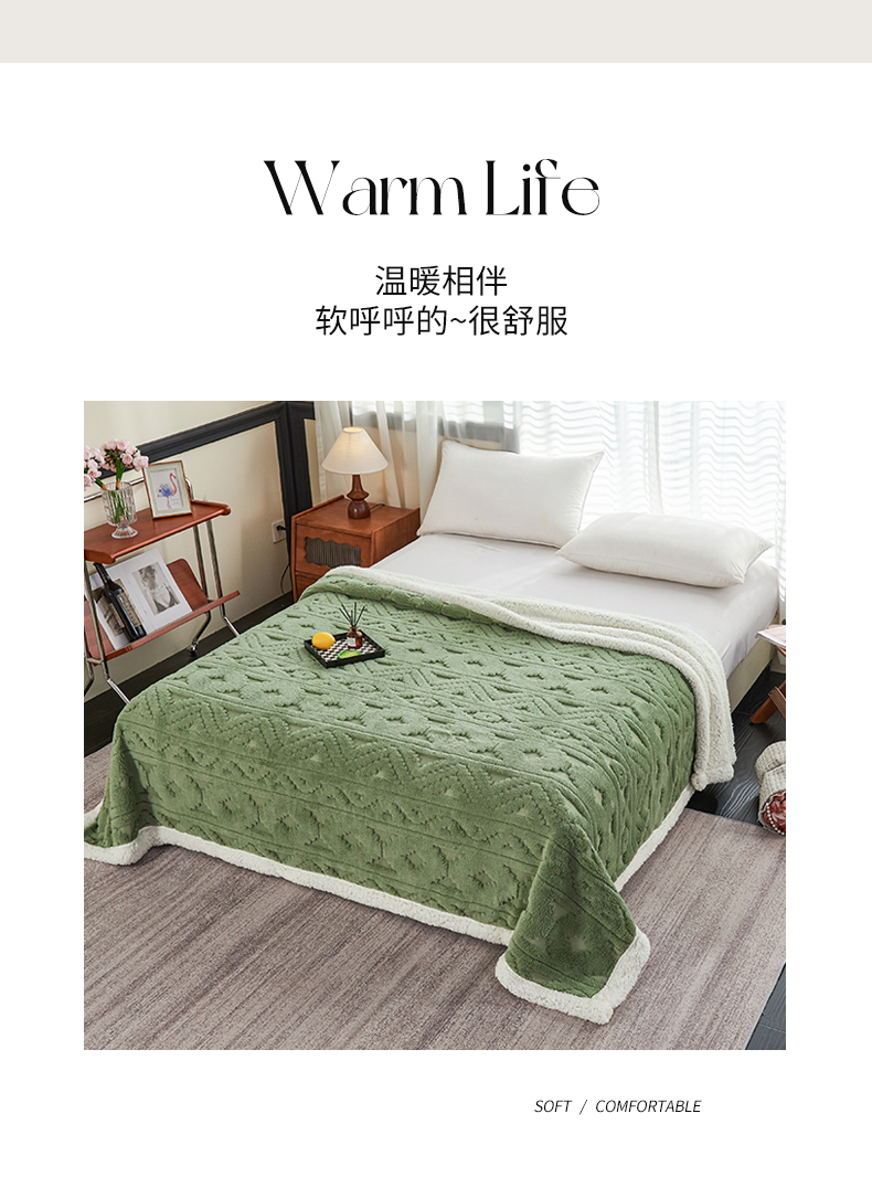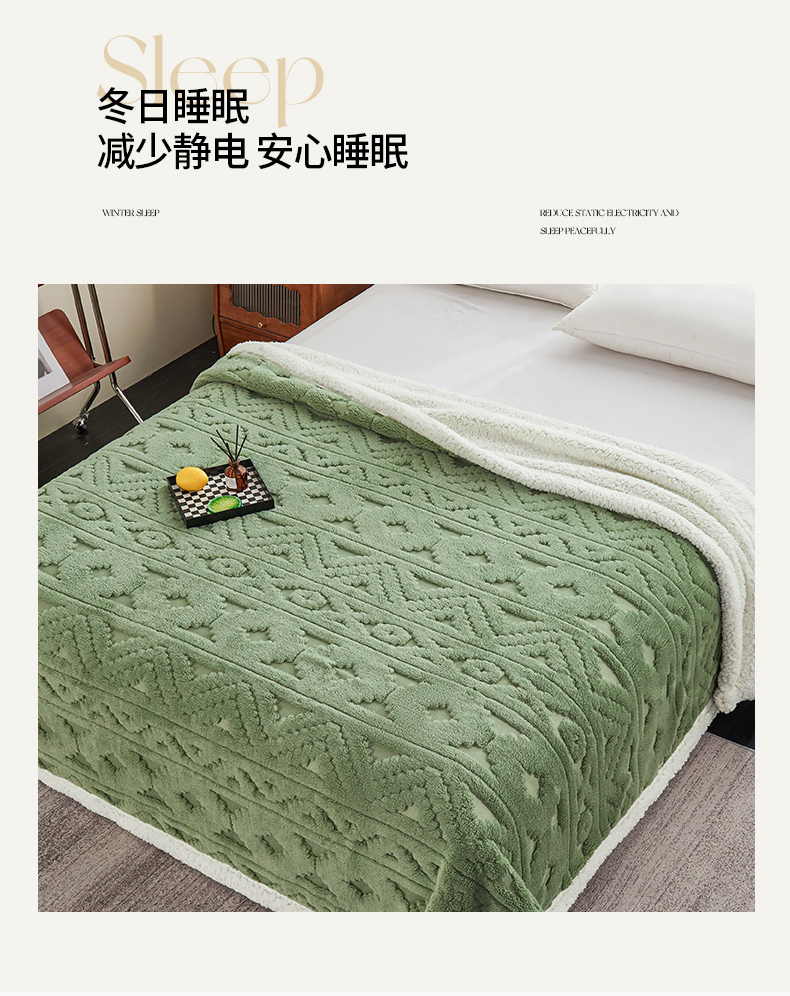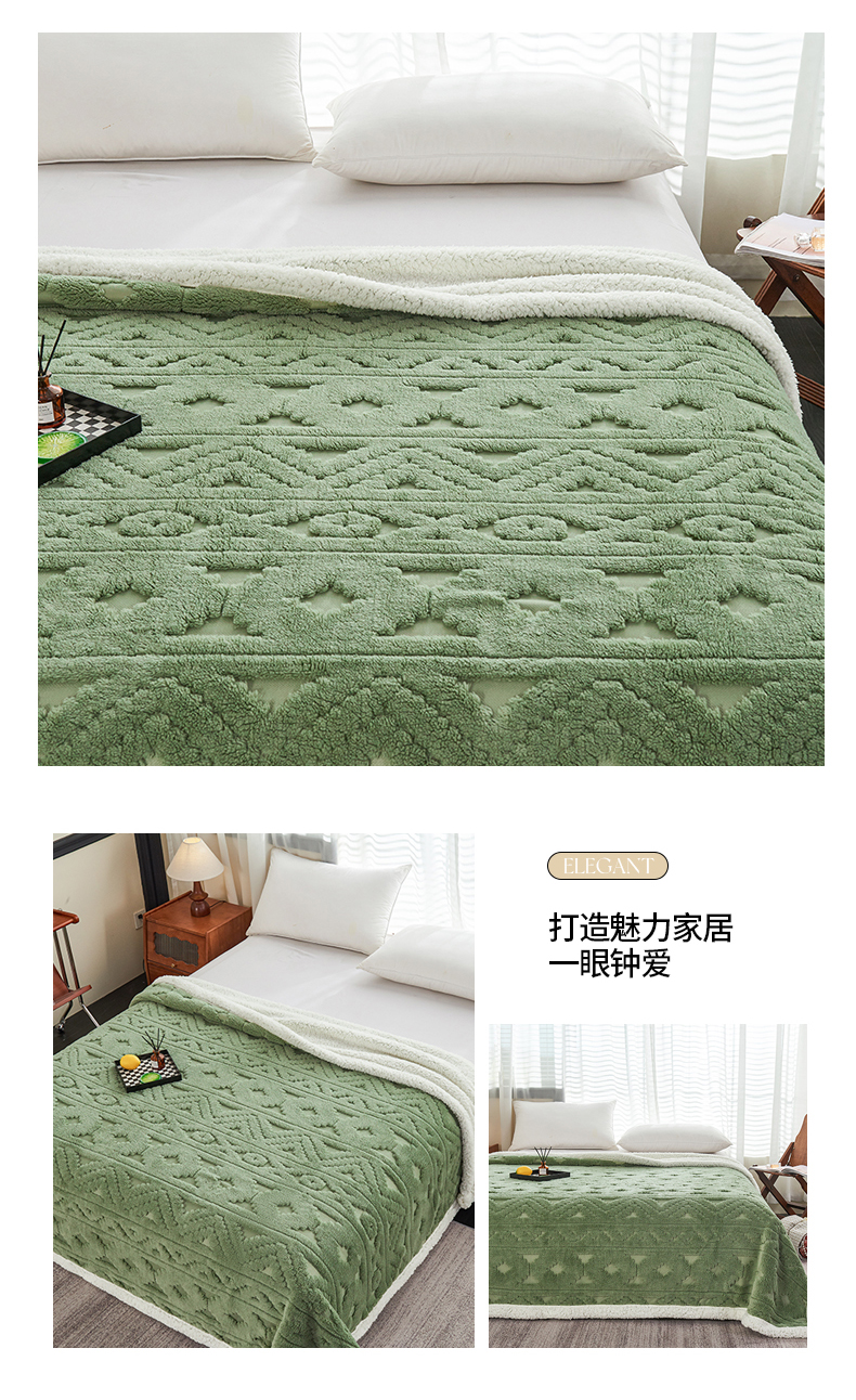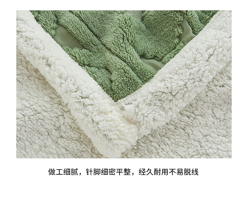 商品名称:枋梢家纺 2025新款提花舒棉绒镂空塔芙绒羊羔绒双层毛毯毯子跨境电商 韵律-果绿