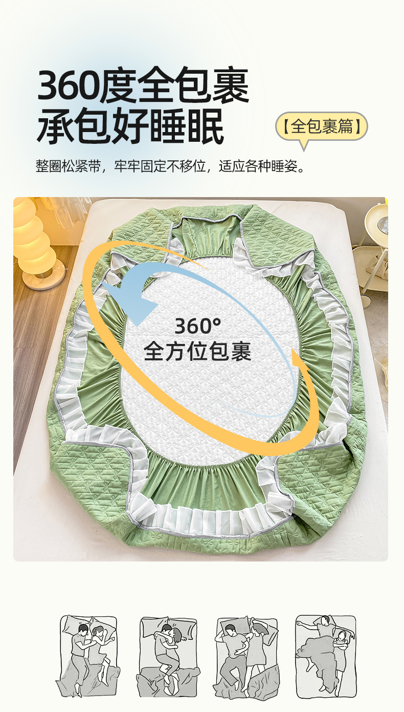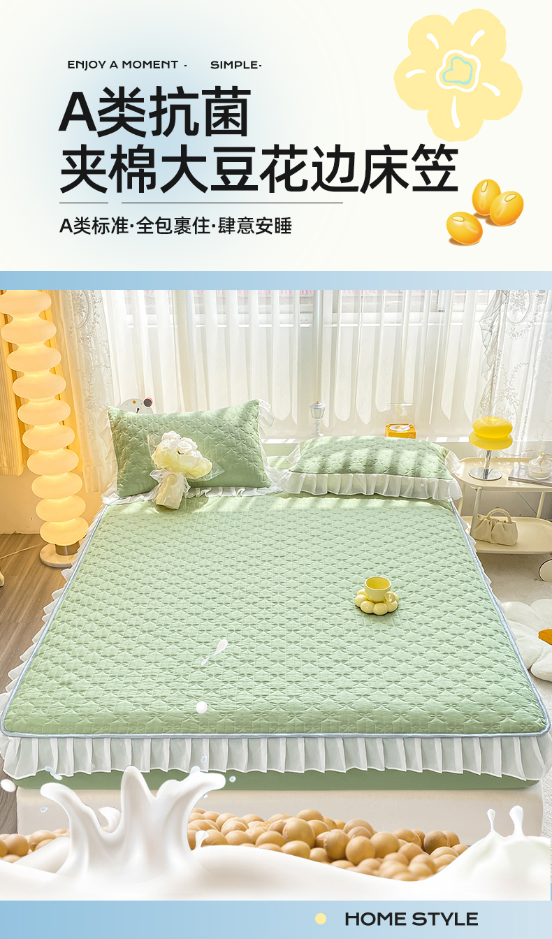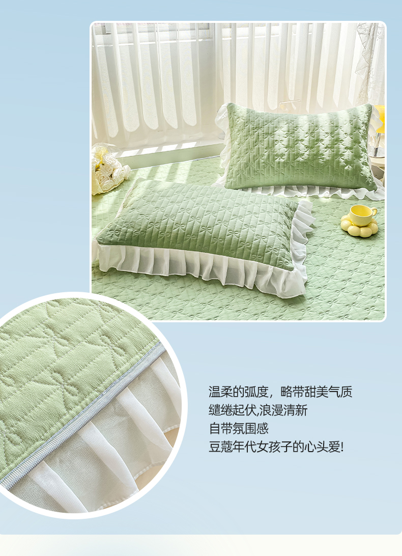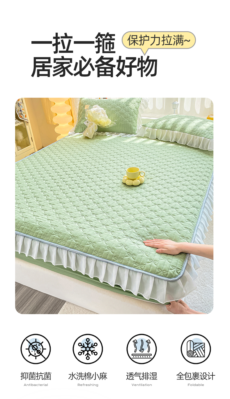 • 91家纺网 家纺一手货源 找家纺 眠势力 2025新款韩版花边夹棉床笠单件公主风四季款床垫保护套床罩 纯色系-果绿 91家纺网 家纺一手货源 找家纺 眠势力 2025新款韩版花边夹棉床笠单件公主风四季款床垫保护套床罩 纯色系-果绿
