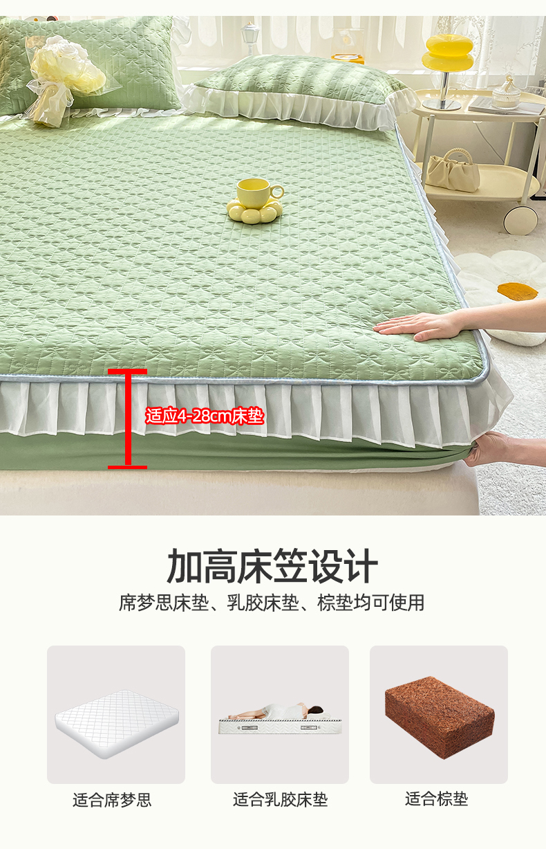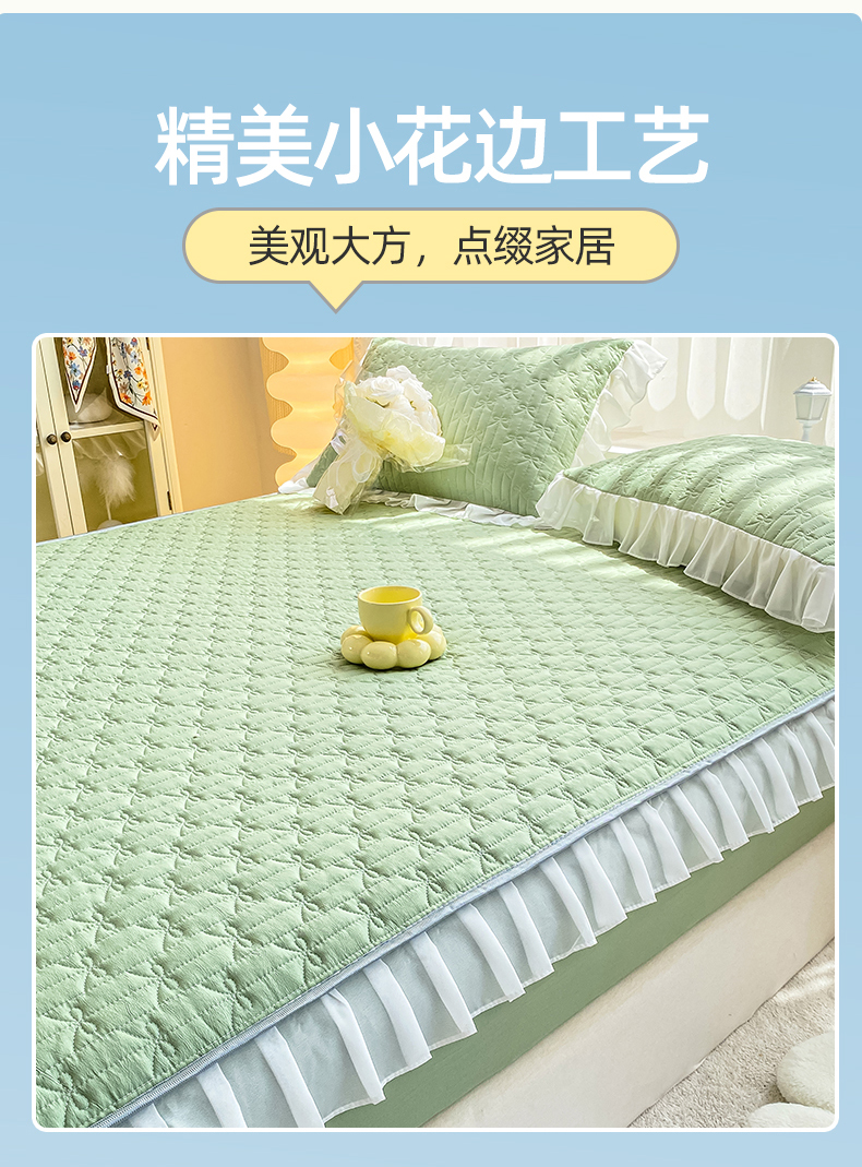 • 91家纺网 家纺一手货源 找家纺 眠势力 2025新款韩版花边夹棉床笠单件公主风四季款床垫保护套床罩 纯色系-果绿