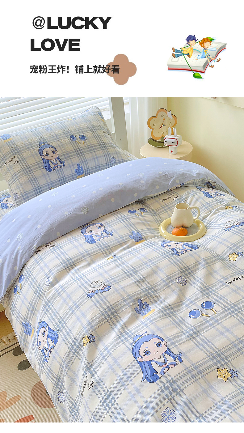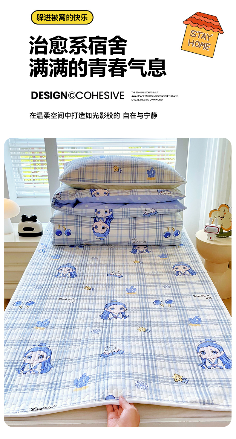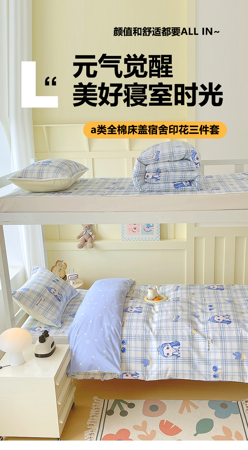 当前位置: 91家纺网 > 商品网购 > 床品套件 > 三件套 > 金鑫汇家纺2025新款A类宿舍全棉印花床盖三件套 谦逊敖丙