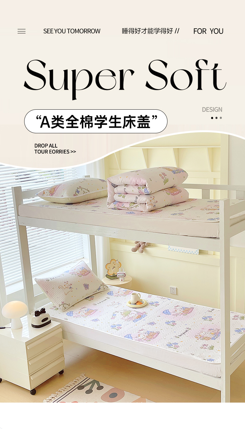 金鑫汇家纺2025新款A类全棉学生宿舍床盖系列单品 喵喵日记