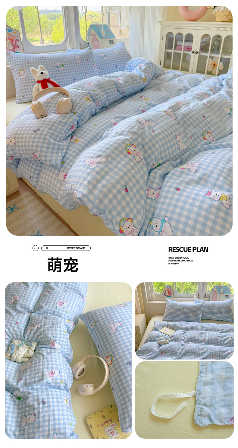当前位置: 91家纺网 > 商品网购 > 床品套件 > 四件套 > 水洗棉四件套 > 晚爱家纺(原晚安家居) 2025新款超柔水洗棉四件套卡通小清新学生宿舍三件套 萌宠