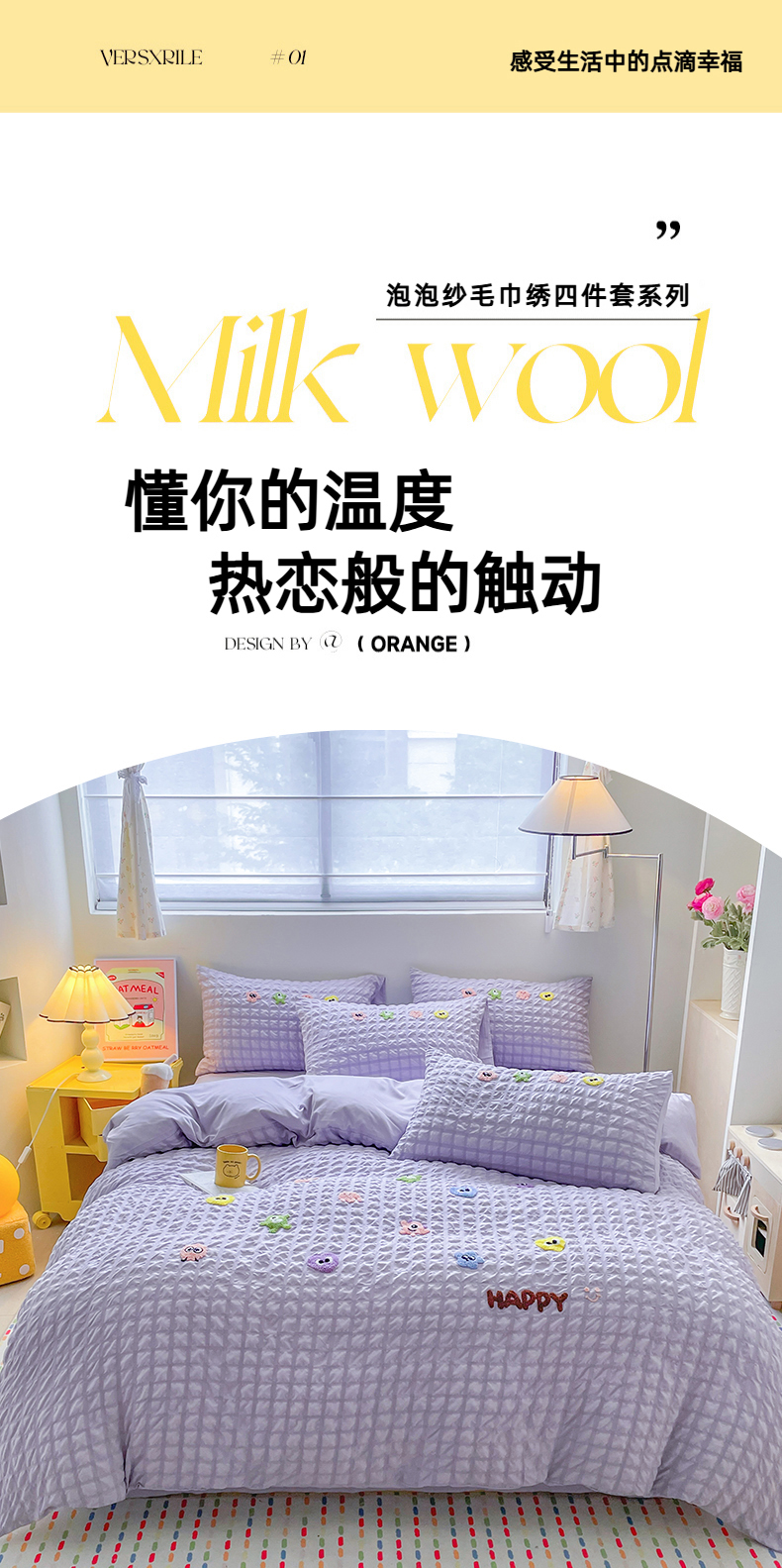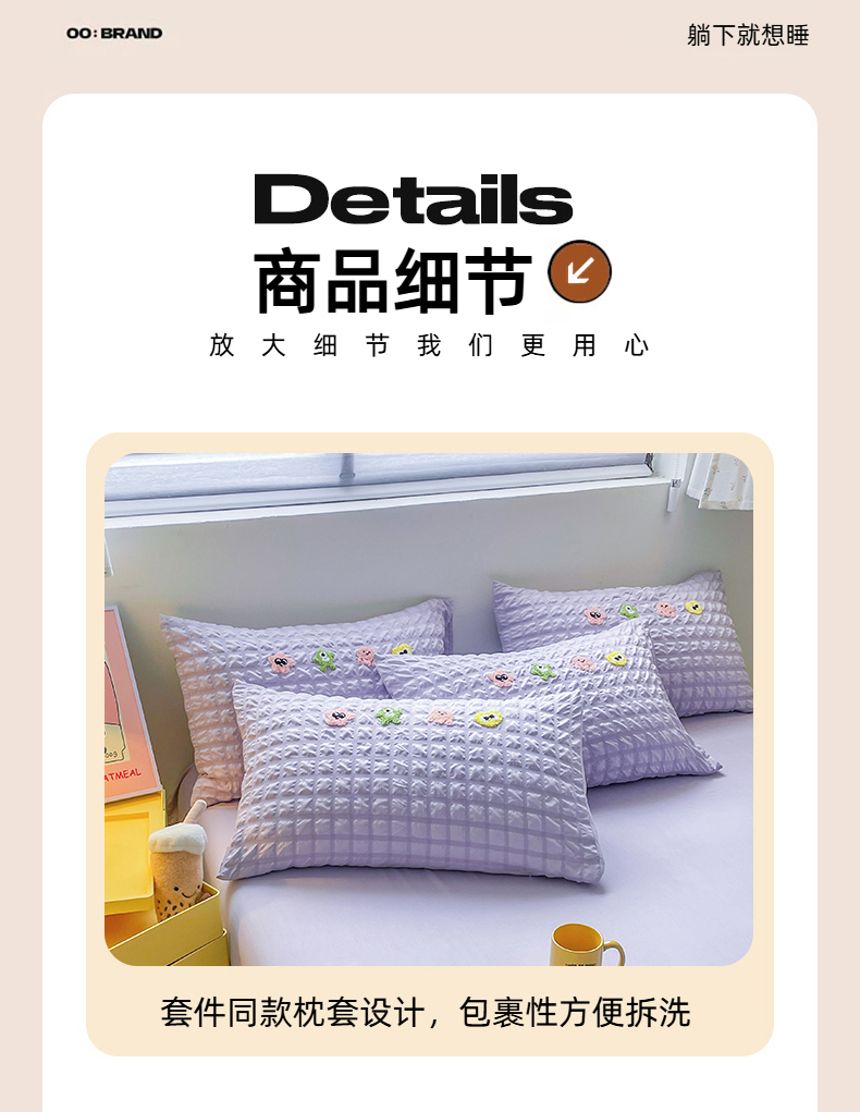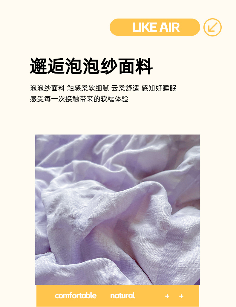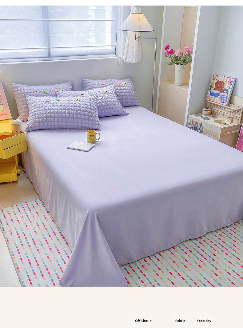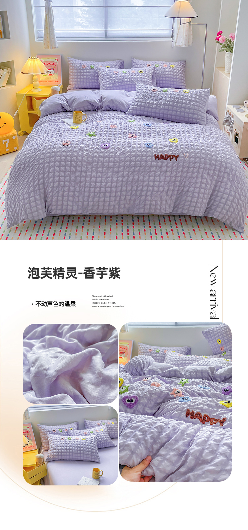 商品名称:千希家纺 2025新款高克重超柔泡泡纱毛巾绣泡芙精灵系列四件套 泡芙精灵-香芋紫
