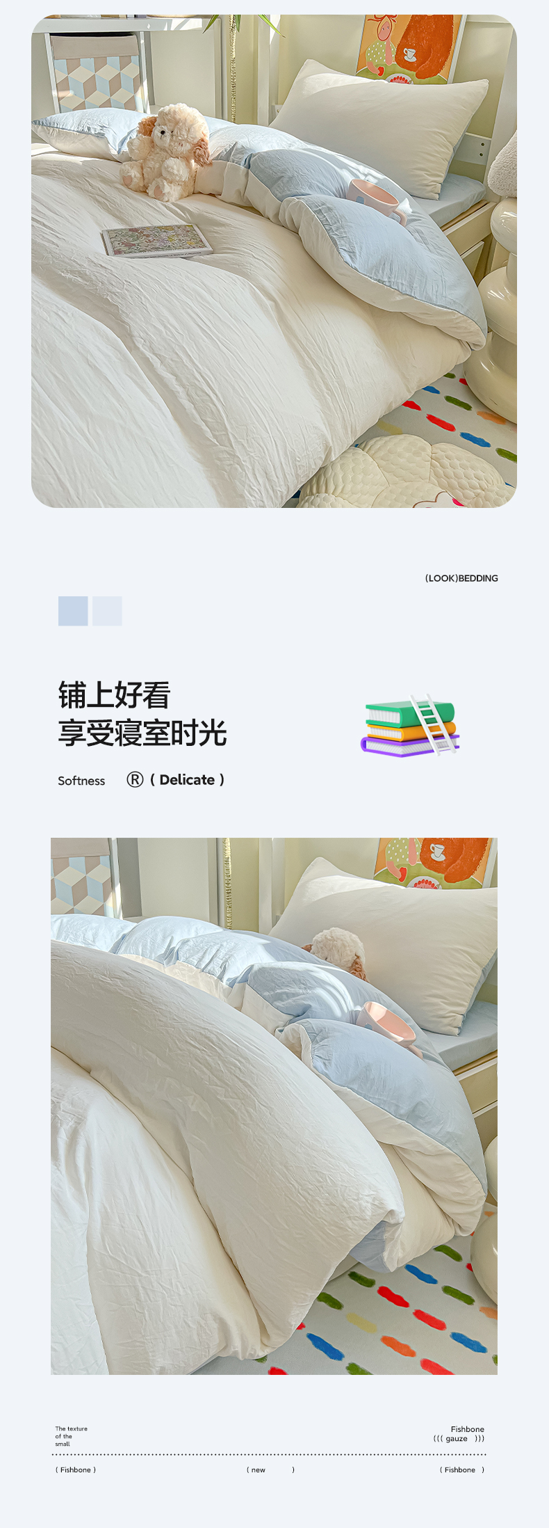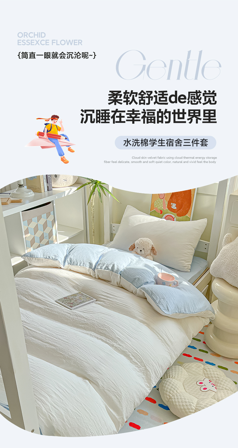 当前位置: 91家纺网 > 商品网购 > 床品套件 > 三件套 > 韩巢家纺 2025新款纯色水洗棉寝室上下铺三件套学生宿舍床上三件套 水洗棉白蓝