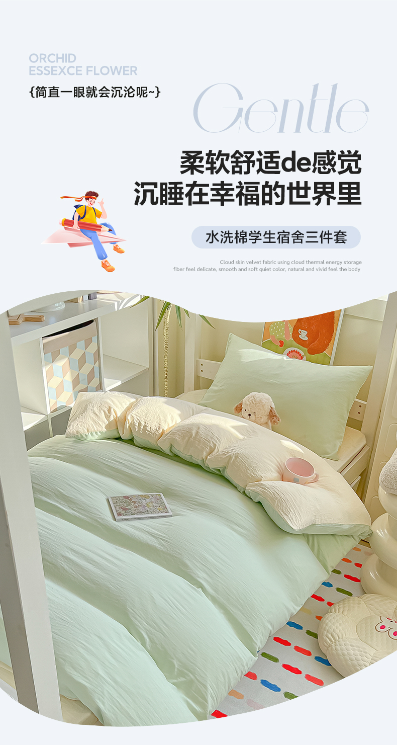 当前位置: 91家纺网 > 商品网购 > 床品套件 > 三件套 > 韩巢家纺 2025新款纯色水洗棉寝室上下铺三件套学生宿舍床上三件套 水洗棉浅绿黄
