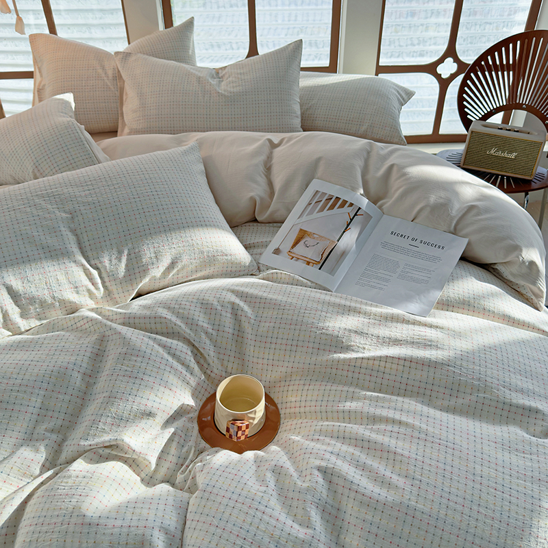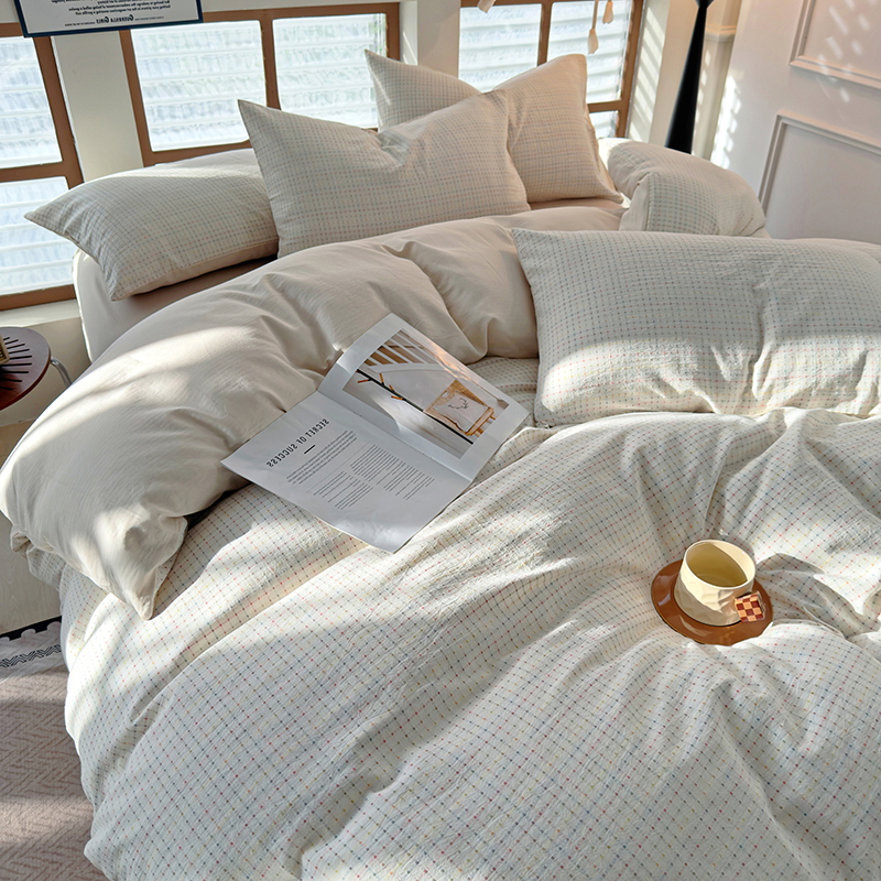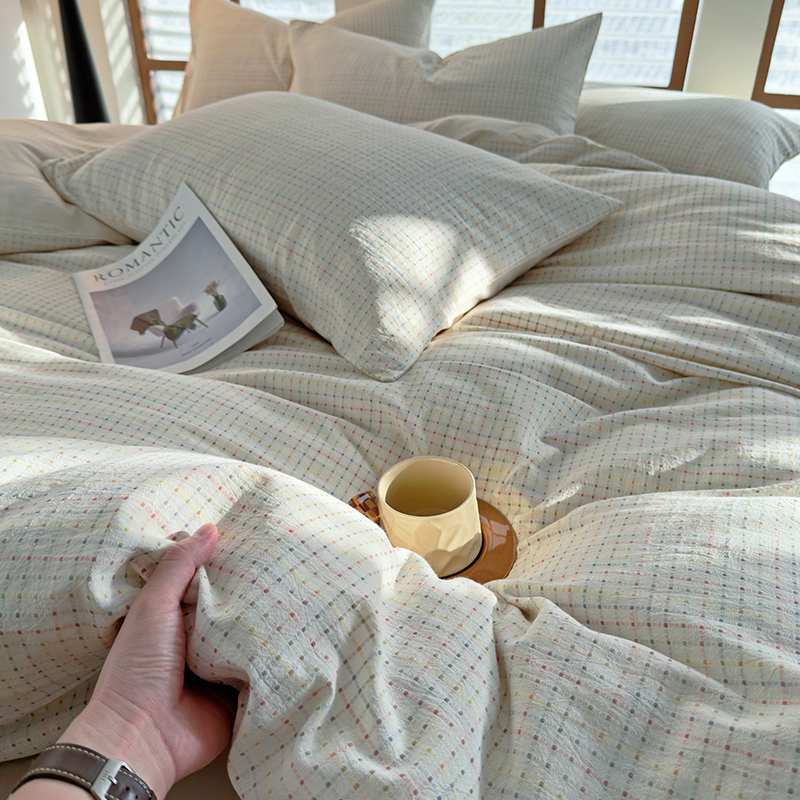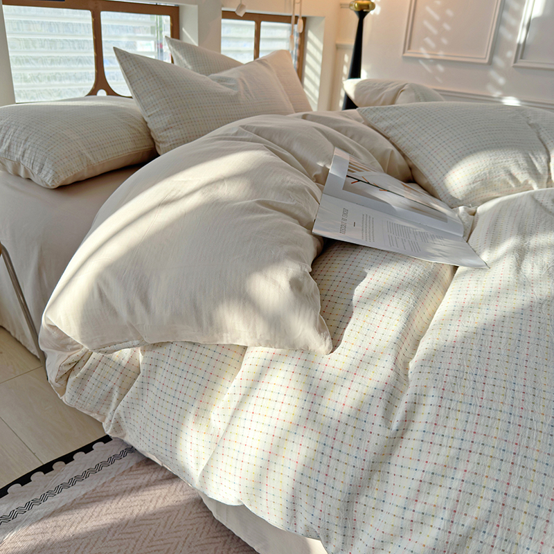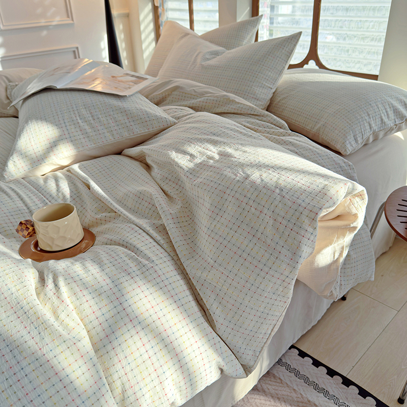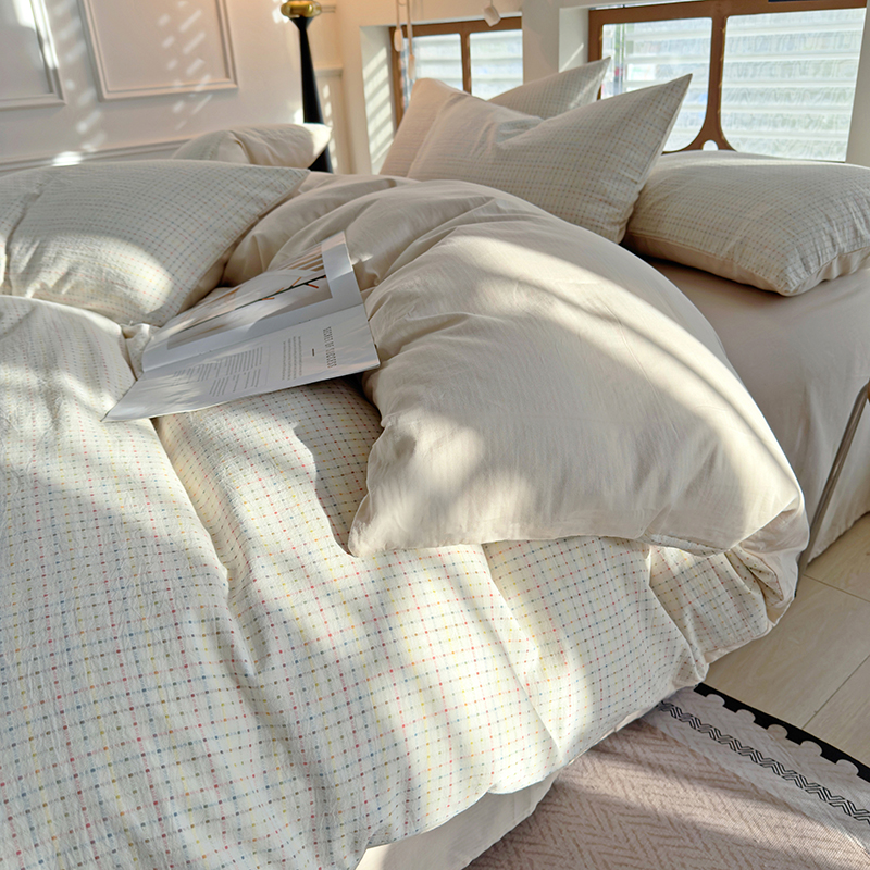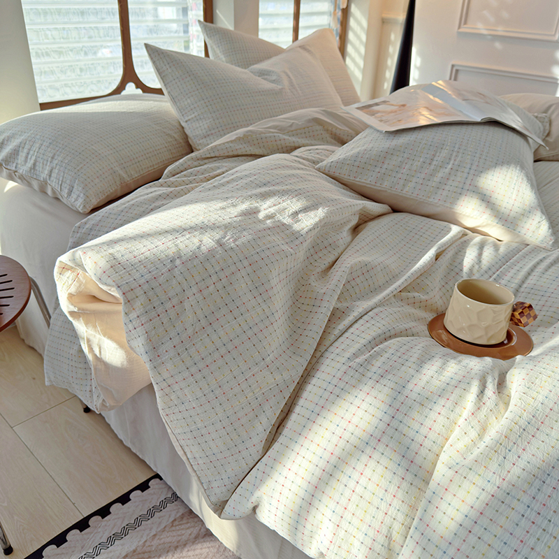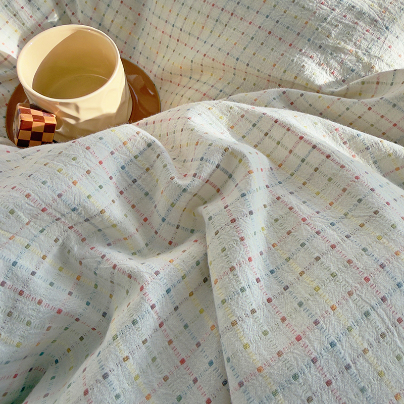 当前位置: 91家纺网 > 商品网购 > 床品套件 > 四件套 > 提花四件套 > 全美家居 2025新款全棉纯棉色织提花水洗四件套 彩虹波点