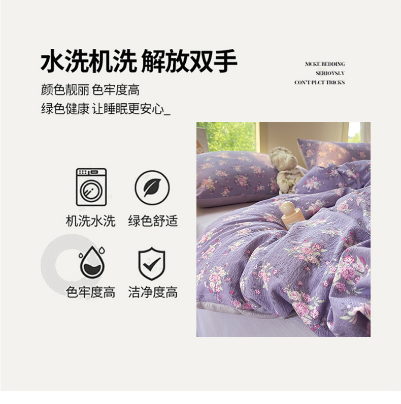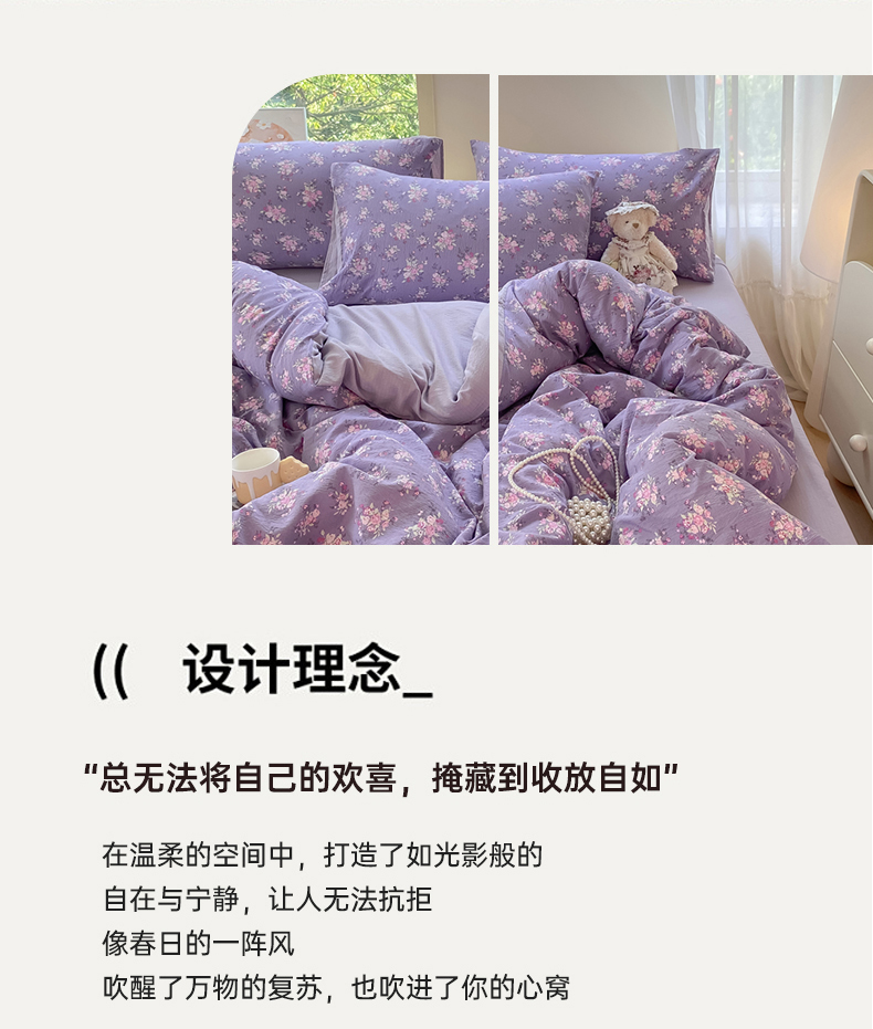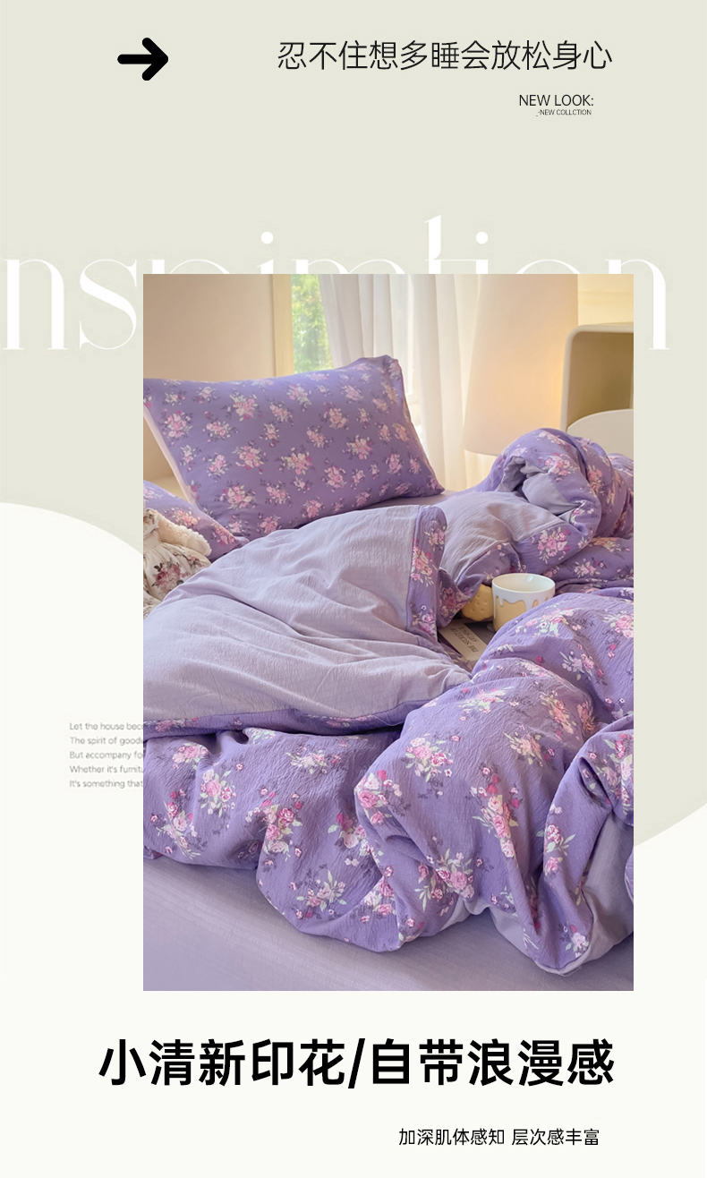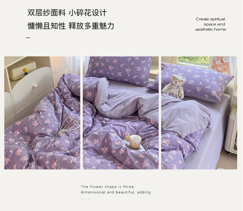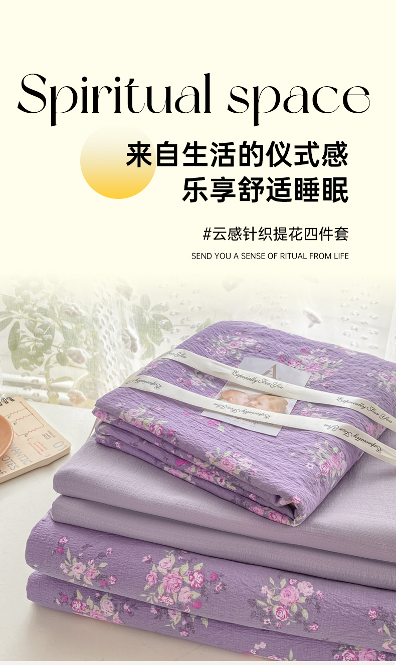 当前位置: 91家纺网 > 商品网购 > 床品套件 > 四件套 > 双层纱四件套 > 雅阁尔家纺 2025新款直播小红书ins风针织提花双层纱四件套小碎花被套床笠三件套-叠拍 豆蔻年华