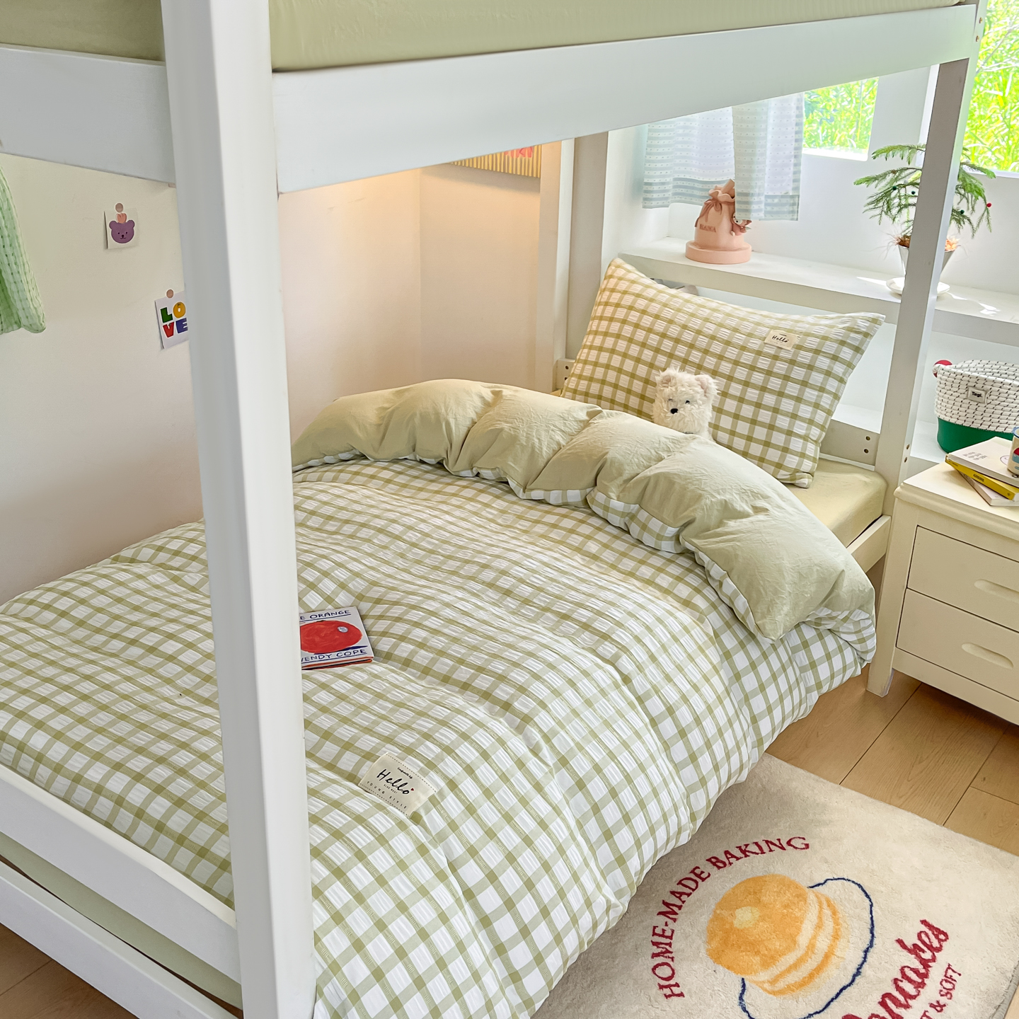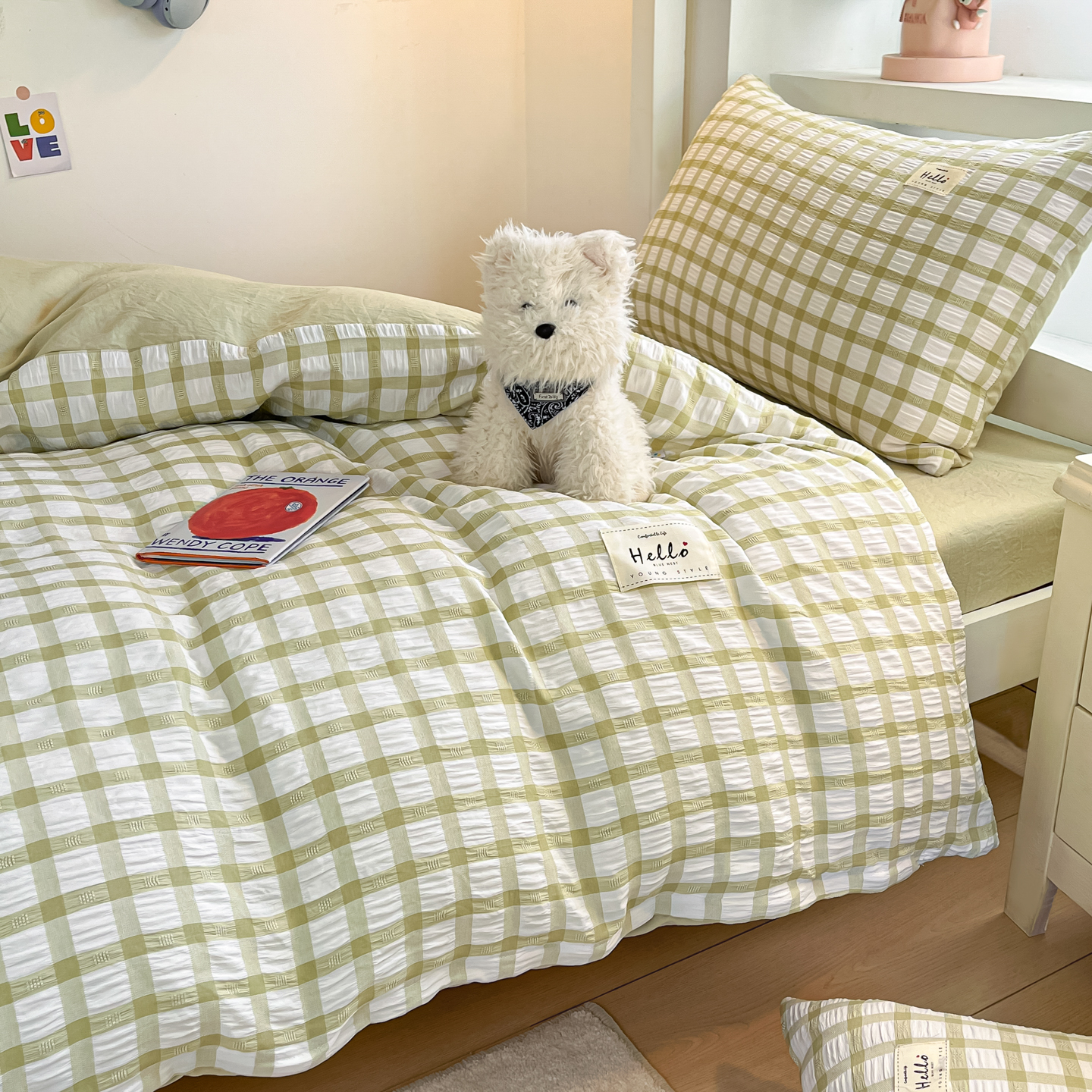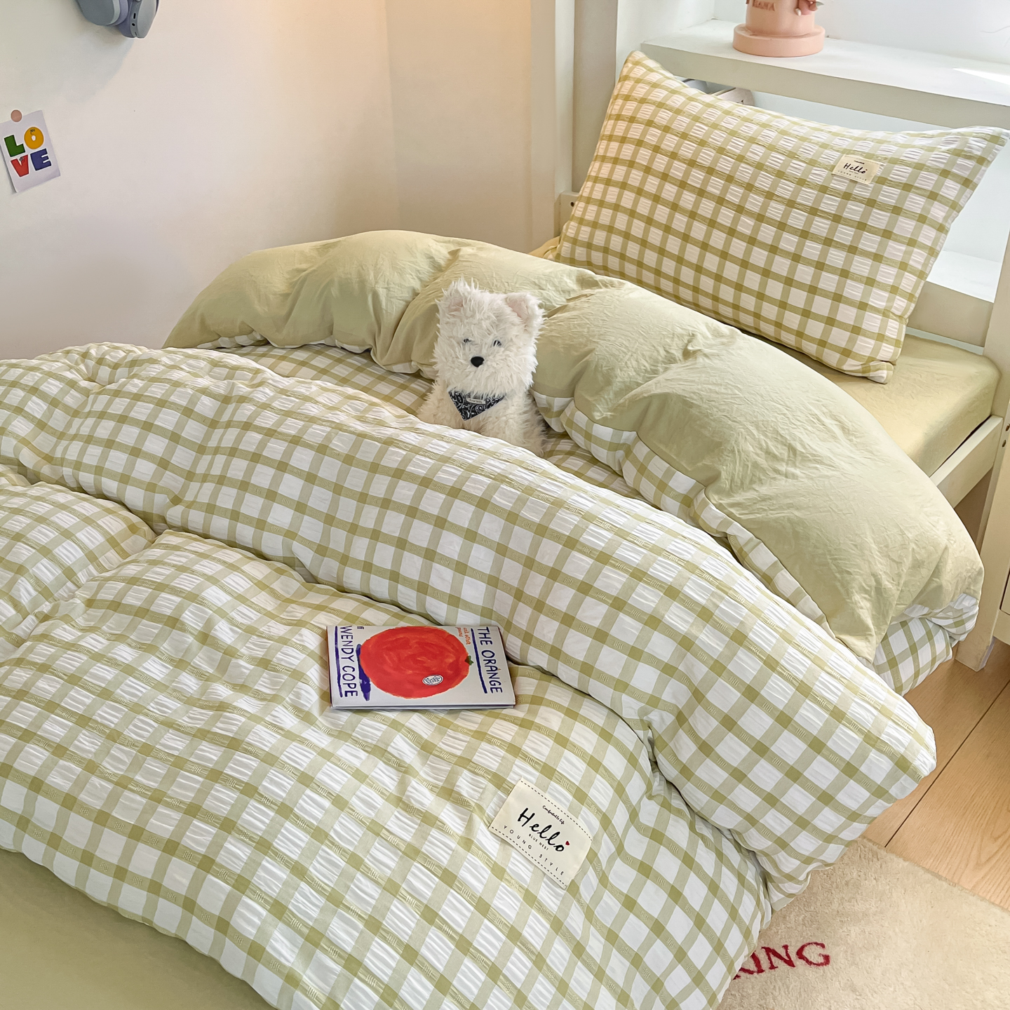 (总)顾里2025新款韩系格子阳离子泡泡纱学生宿舍上下铺三件套