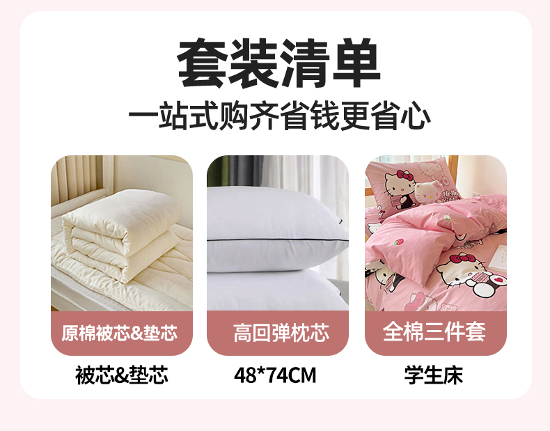 0.9m床六件套【床单三件套+春秋被约3斤+枕芯+垫芯】 | ¥176.00 |