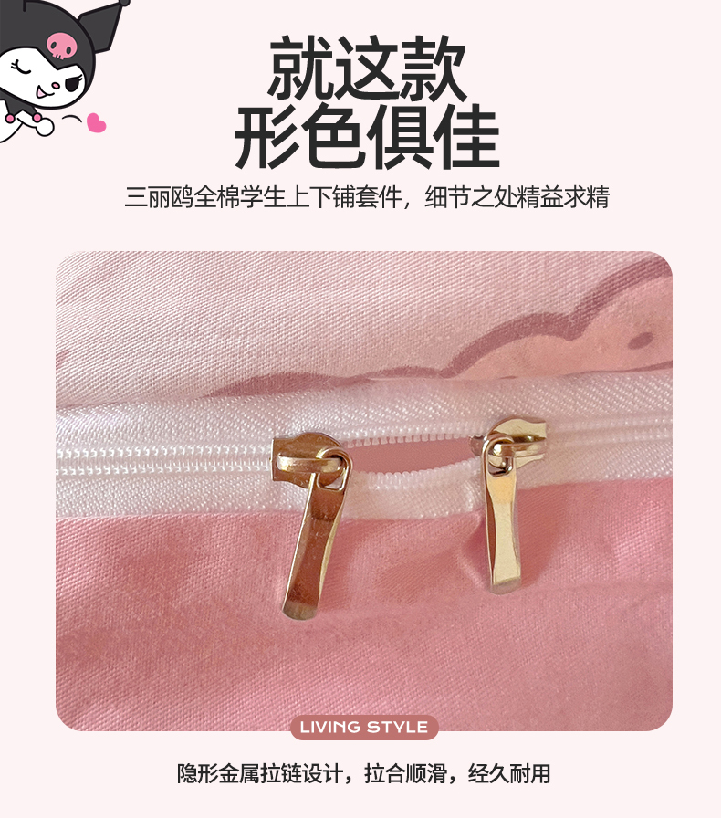 当前位置: 91家纺网 > 商品网购 > 床品套件 > 多件套 > 多件套 > 名兮家居 2025-全棉纯棉13372经典奥特曼-三丽鸥学生床多件套【含防伪标】 爱心kt
