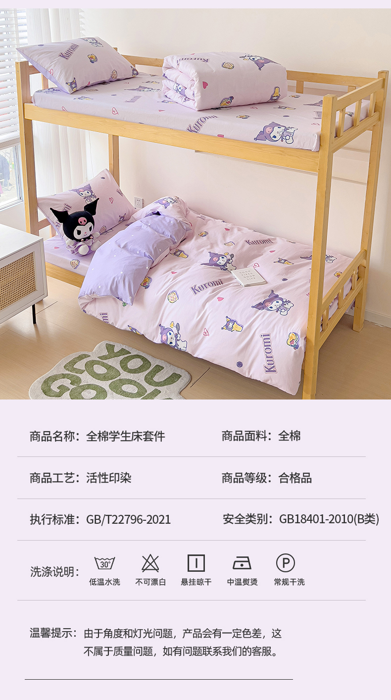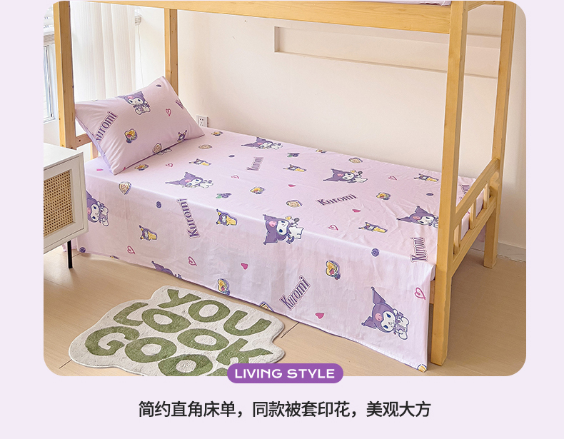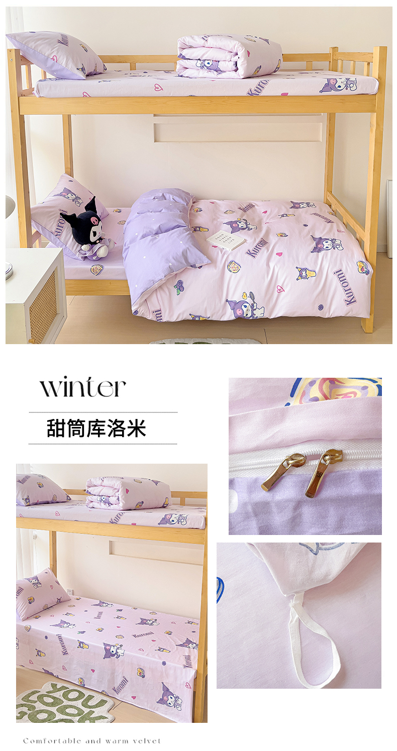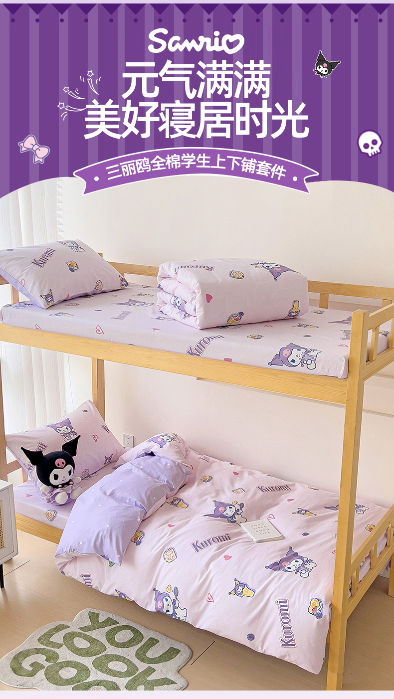当前位置: 91家纺网 > 商品网购 > 床品套件 > 多件套 > 多件套 > 名兮家居 2025-全棉纯棉13372经典奥特曼-三丽鸥学生床多件套【含防伪标】 甜筒库洛米