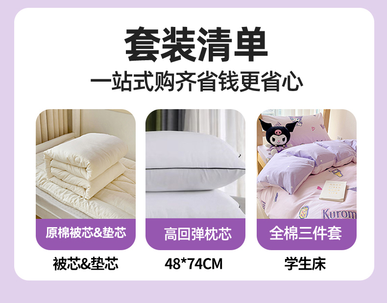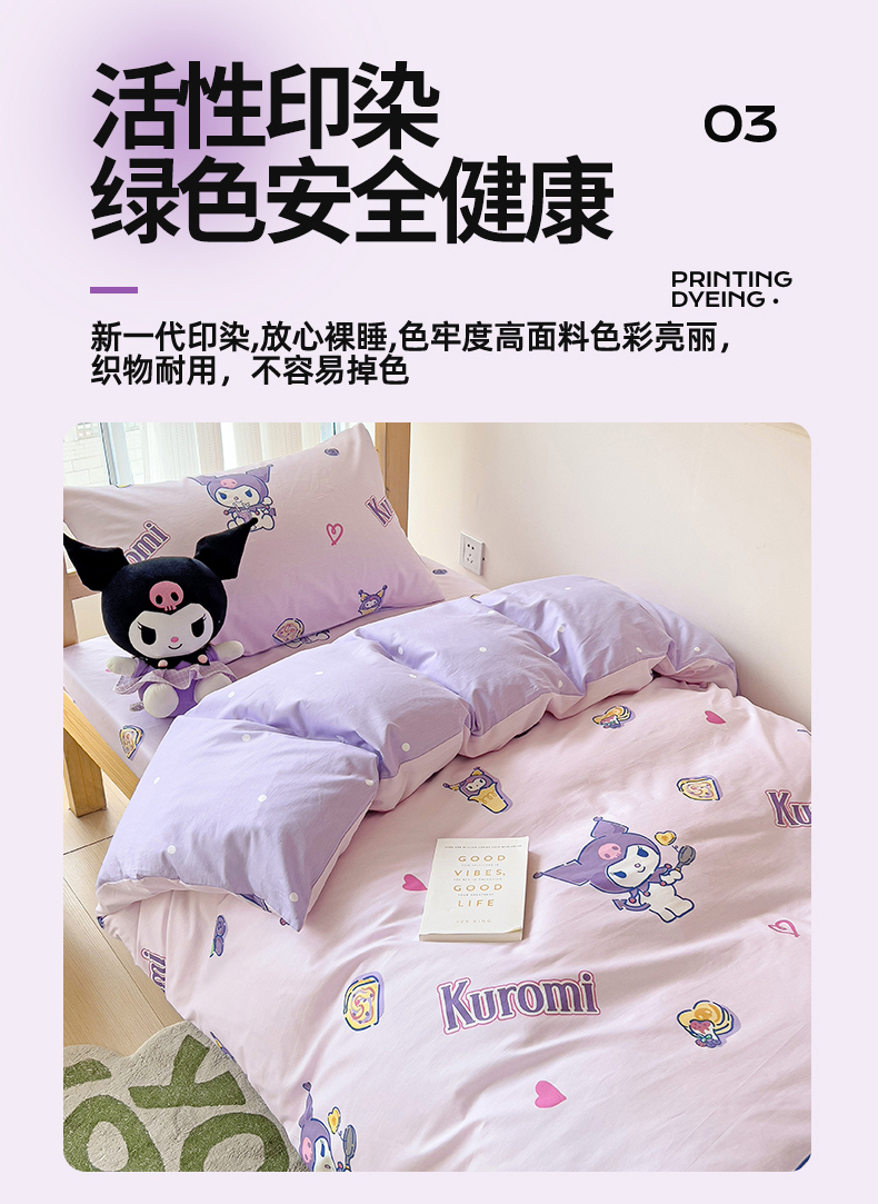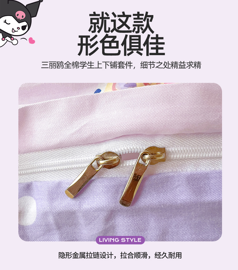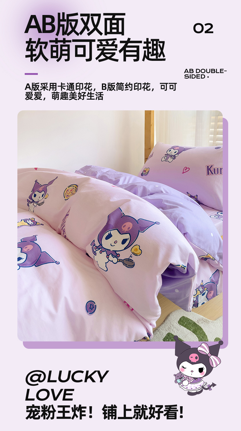 当前位置: 91家纺网 > 商品网购 > 床品套件 > 多件套 > 多件套 > 名兮家居 2025-全棉纯棉13372经典奥特曼-三丽鸥学生床多件套【含防伪标】 甜筒库洛米