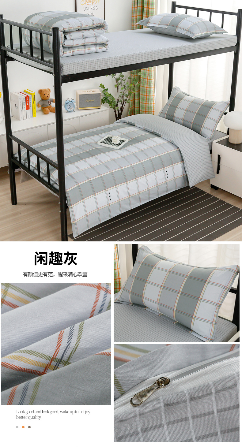 当前位置: 91家纺网 > 商品网购 > 床品套件 > 四件套 > 全棉普通四件套 > 乐旗家纺 2025新款13372全棉床笠款学生宿舍三件套六件套多件套 深灰+浅灰