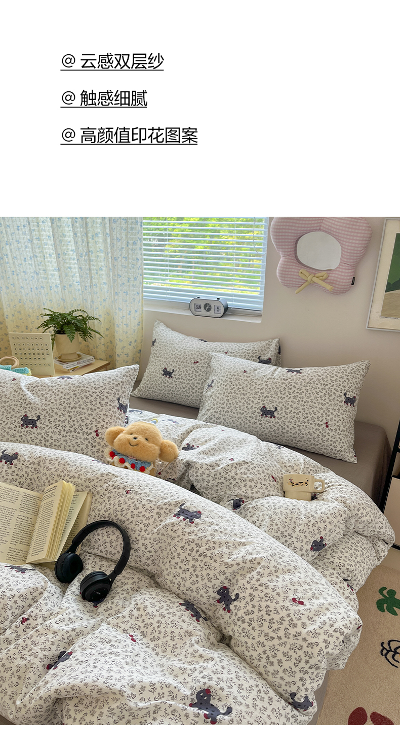 当前位置: 91家纺网 > 商品网购 > 床品套件 > 四件套 > 其它四件套 > 卡迪熊家纺 2025新款超柔云感m印花双层纱四件套 丛林醉猫
