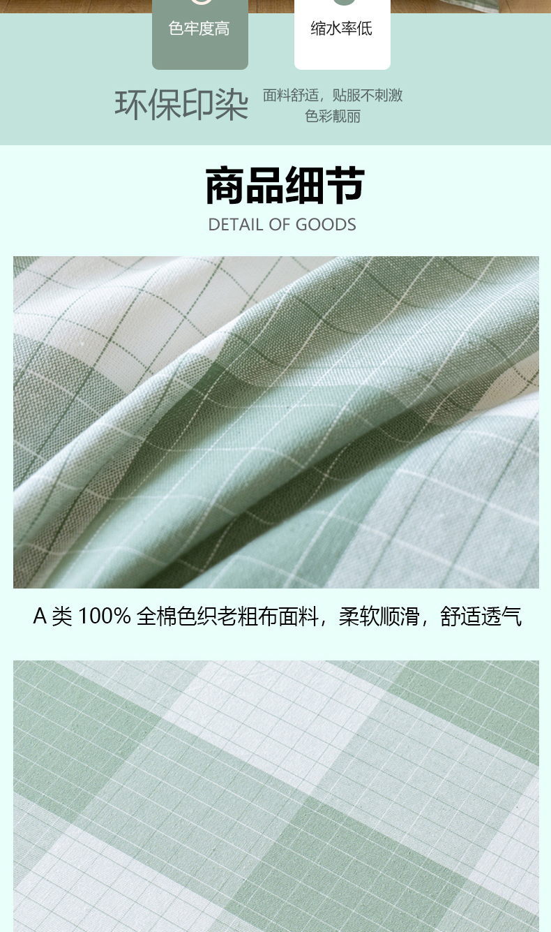 商品名称:居美良品 2025新款100%全棉色织老粗布单品单枕套 素雅-绿格