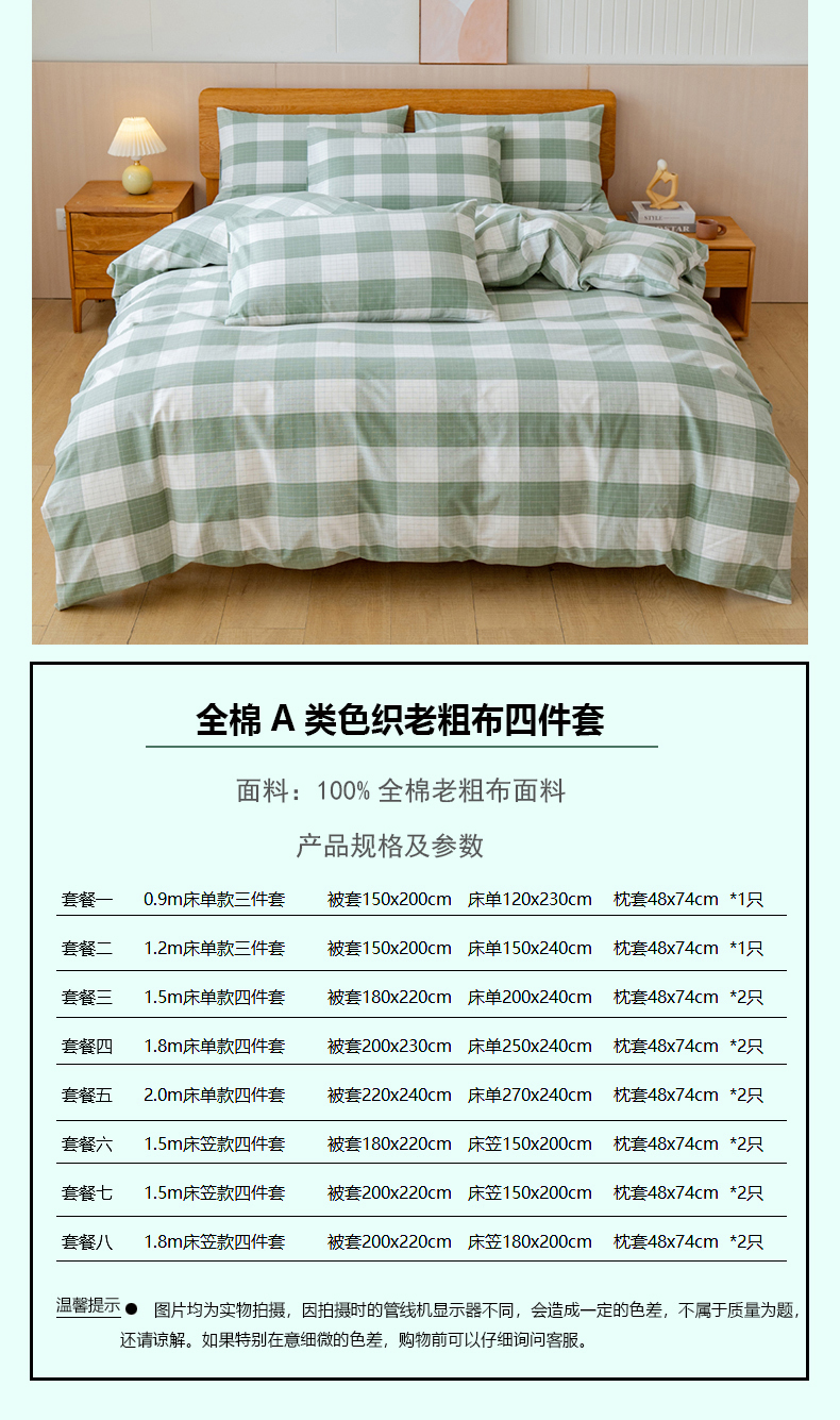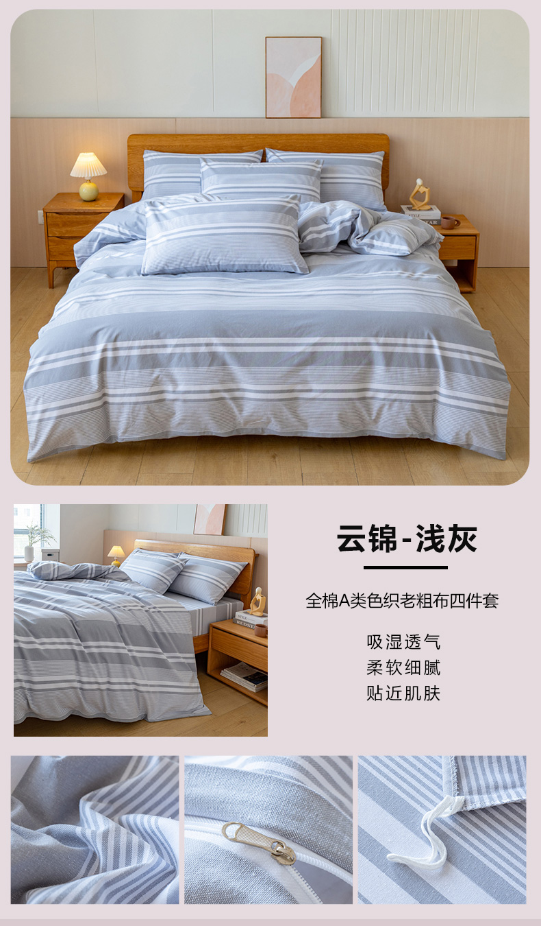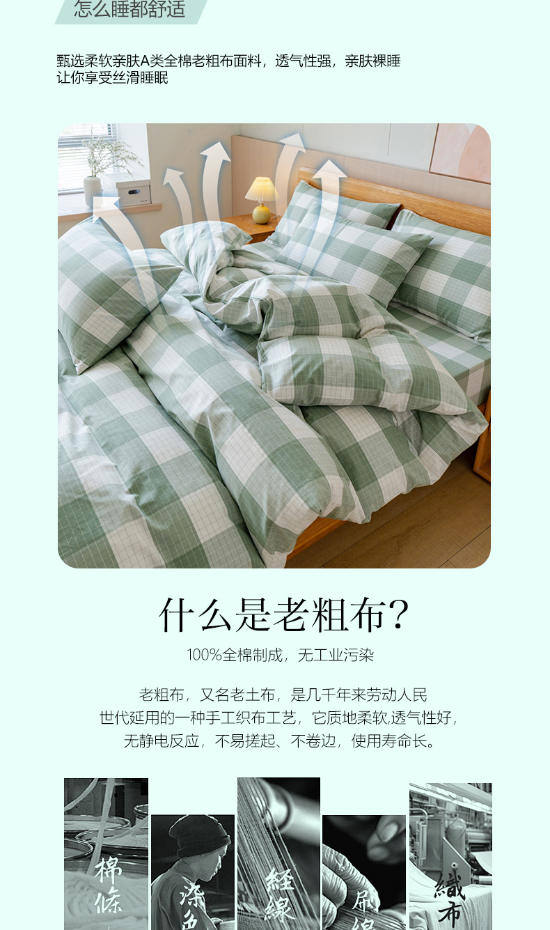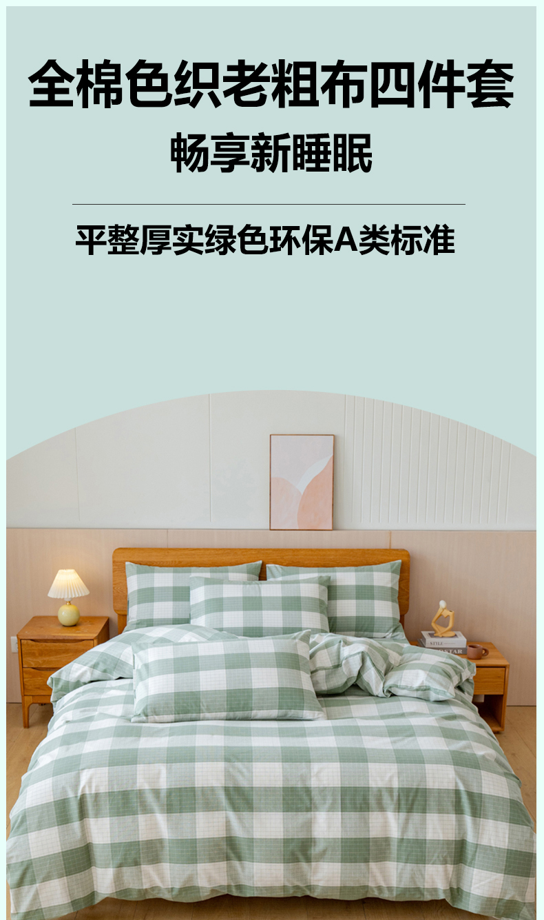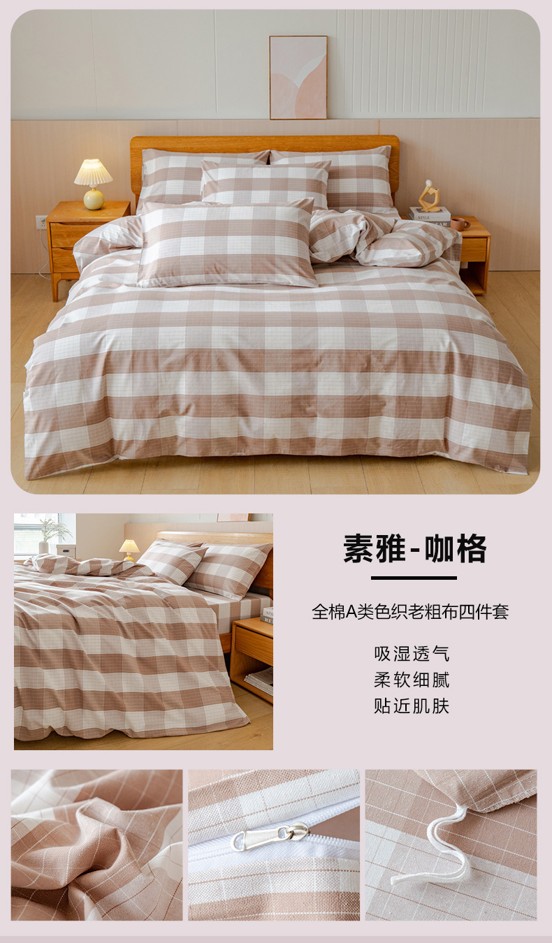 (总)居美良品 2025新款100%全棉色织水洗棉四件套细纱老粗布四件套,灰小格,静雅-蓝,静雅-绿,静雅-玉,兰青-灰,蓝小格,绿小格,迷雾-蓝,米咖小格,奶昔-蓝,深灰-咖,松绿-灰,烟雨-灰