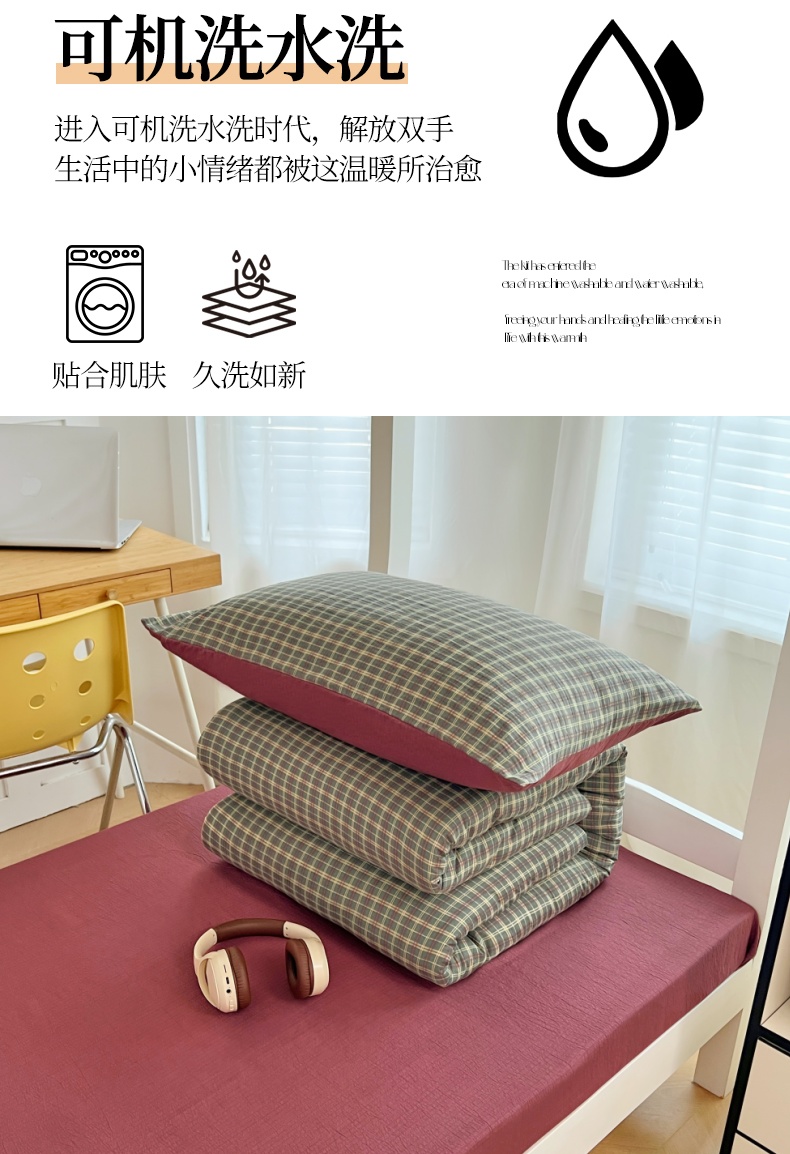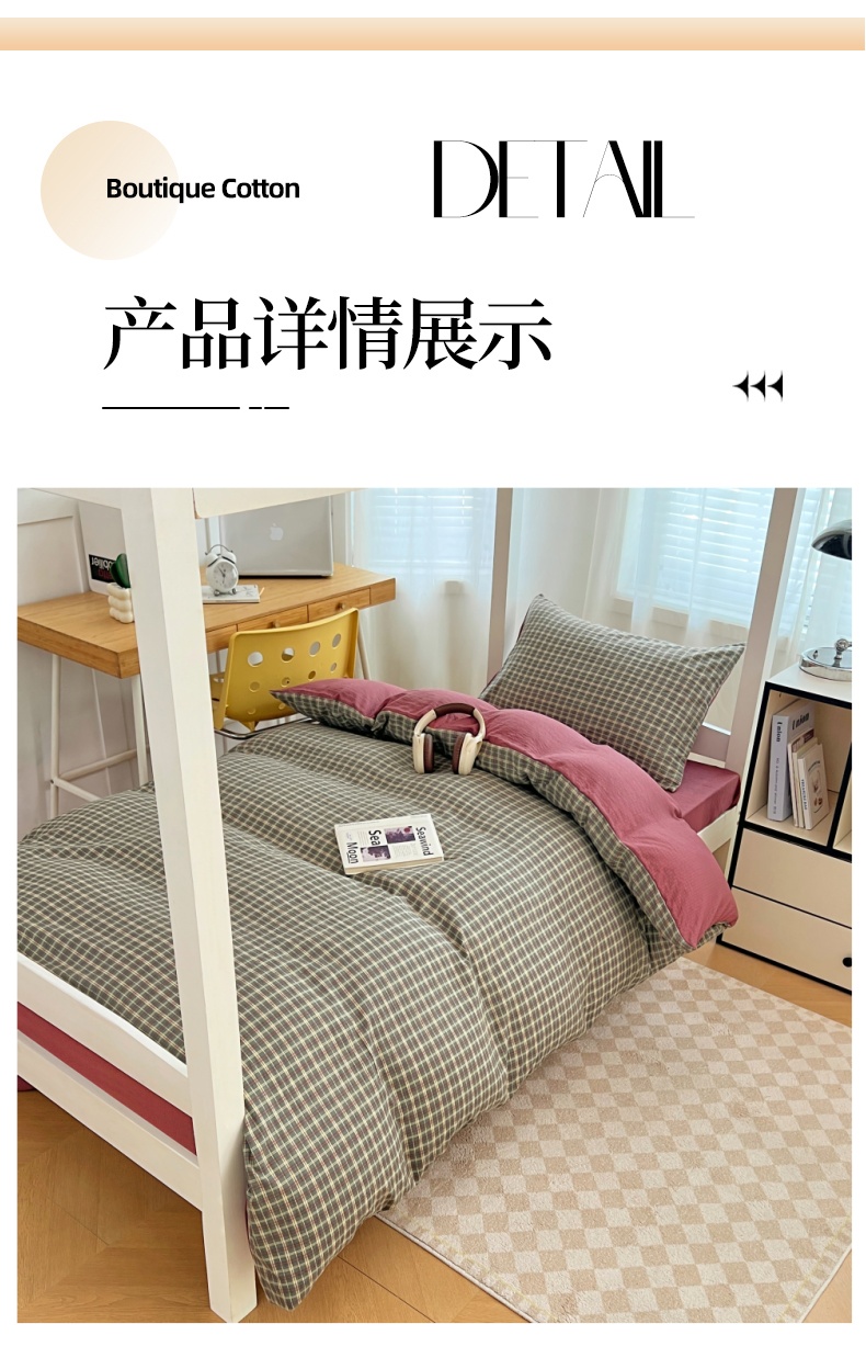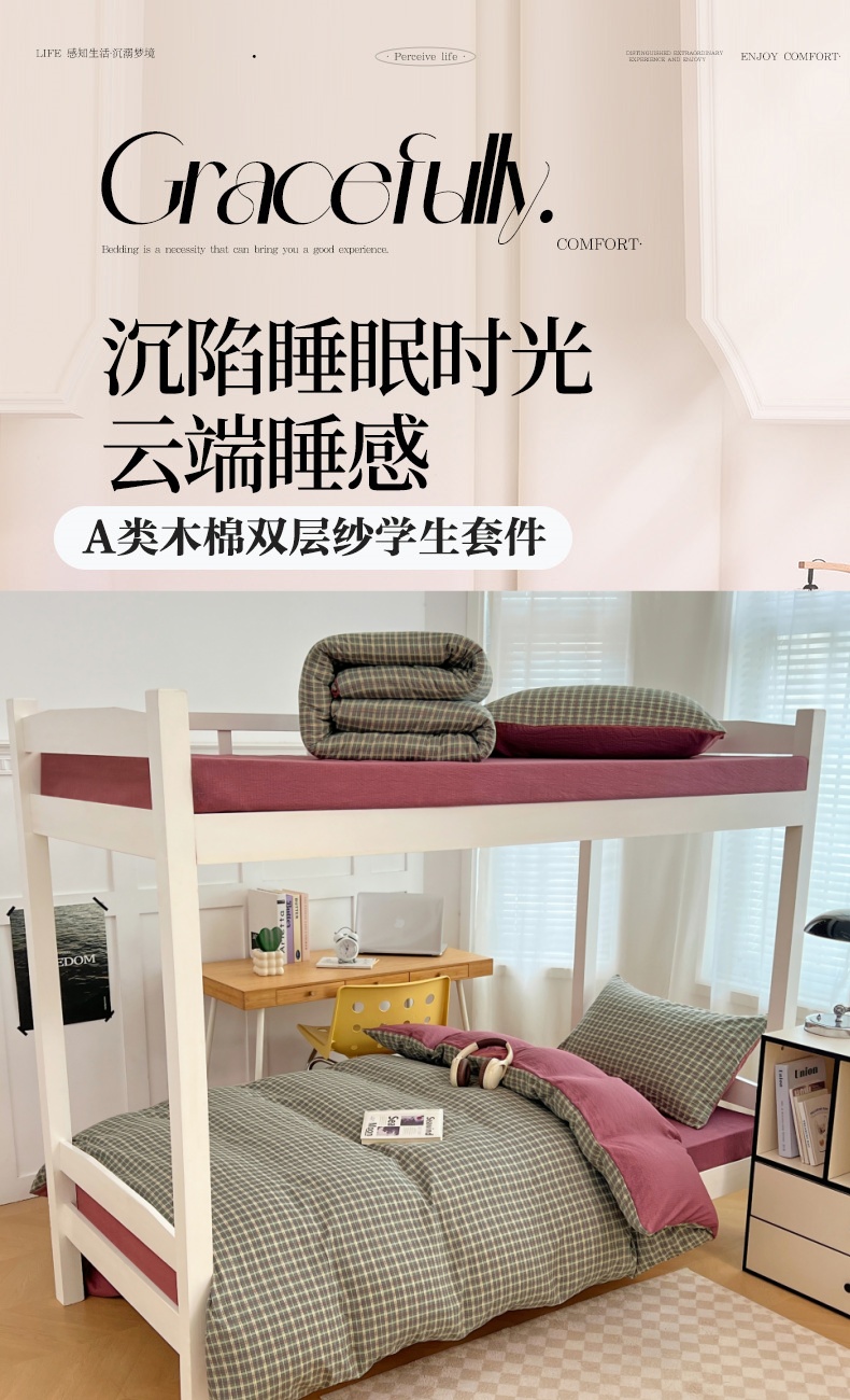 商品名称:梦舒羽 2025新款双层纱格子学生宿舍上下铺套件 常规款-简兮绿格