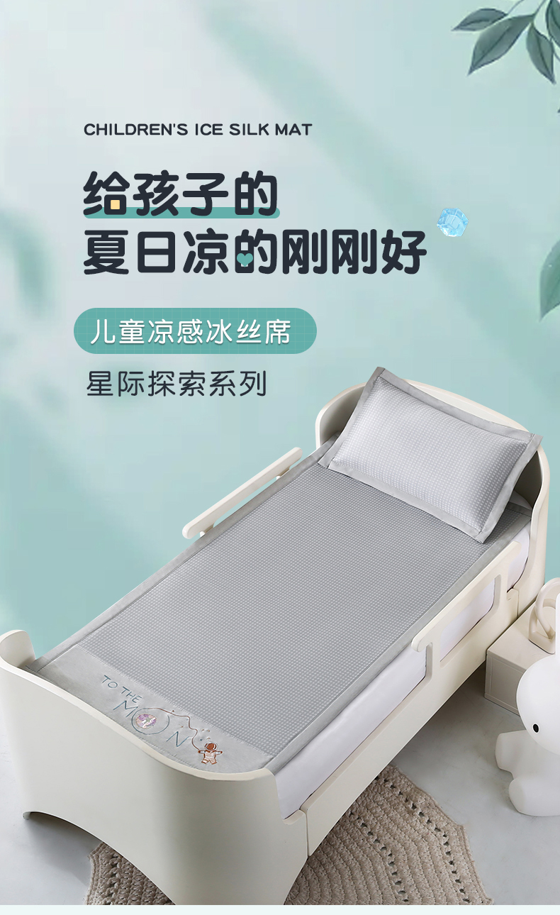 商品名称:小牛席业 2025新款儿童凉感冰丝席儿童席-星际探索 星际探索-灰色