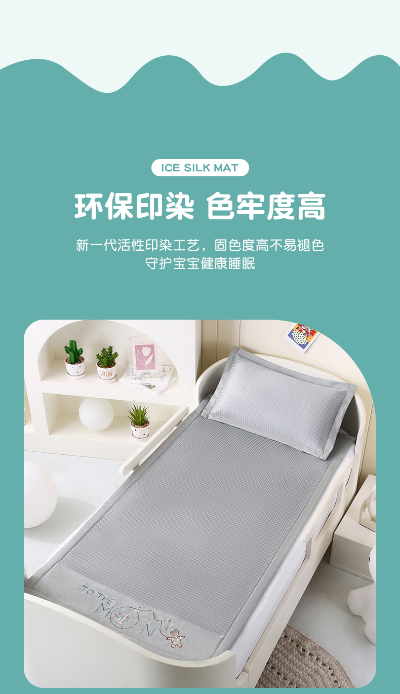 小牛席业 2025新款儿童凉感冰丝席儿童席-星际探索 星际探索-灰色