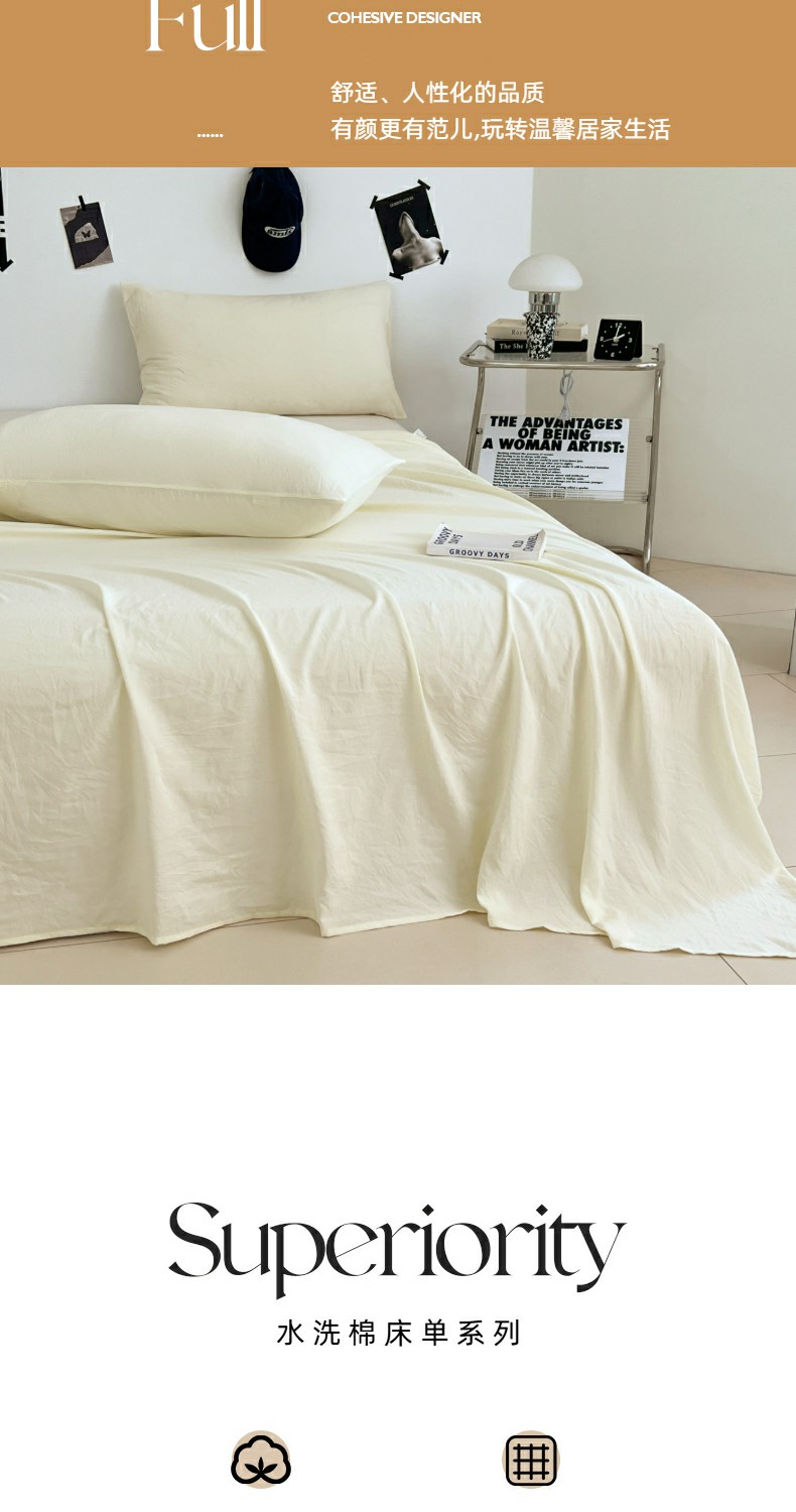 优尚佳生活馆 2025新款亲肤水洗棉纯色单品床单 奶酪白